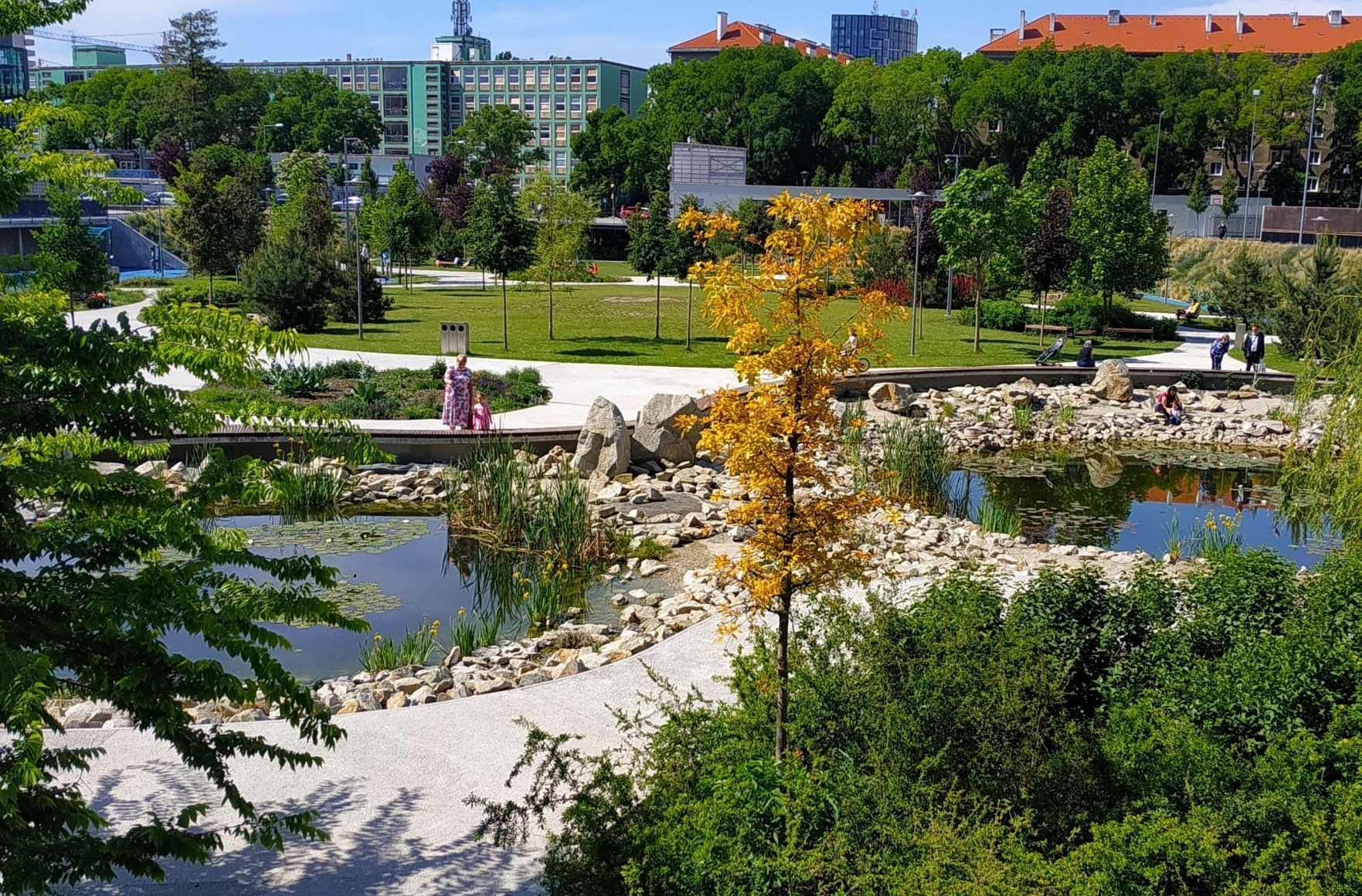 V parku Jama v Novom Meste je systém na zadržiavanie dažďovej vody. Vďaka nemu zadržia až 180 l vody na 1 ha za sekundu.