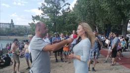 Michal Vicáň skončil nakoniec vo vode jazera.