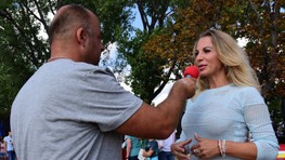 Moderátor podujatia Richard Vrablec s riaditeľkou Cultus Ružinov Andreou Kozákovou, ktorá predstavila festival Symfónia umenia.