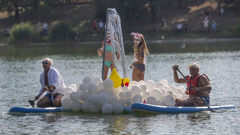 Štrkovecké jazero v bratislavskom Ružinove zaplnili v nedeľu (14. augusta) opäť netradičné plavidlá a o zábavu bolo postarané. Obľúbené podujatie Na vlnách fantázie si nenechali ujsť stovky, možno tisícky ľudí, väčšinou celé rodiny a určite neľutovali.