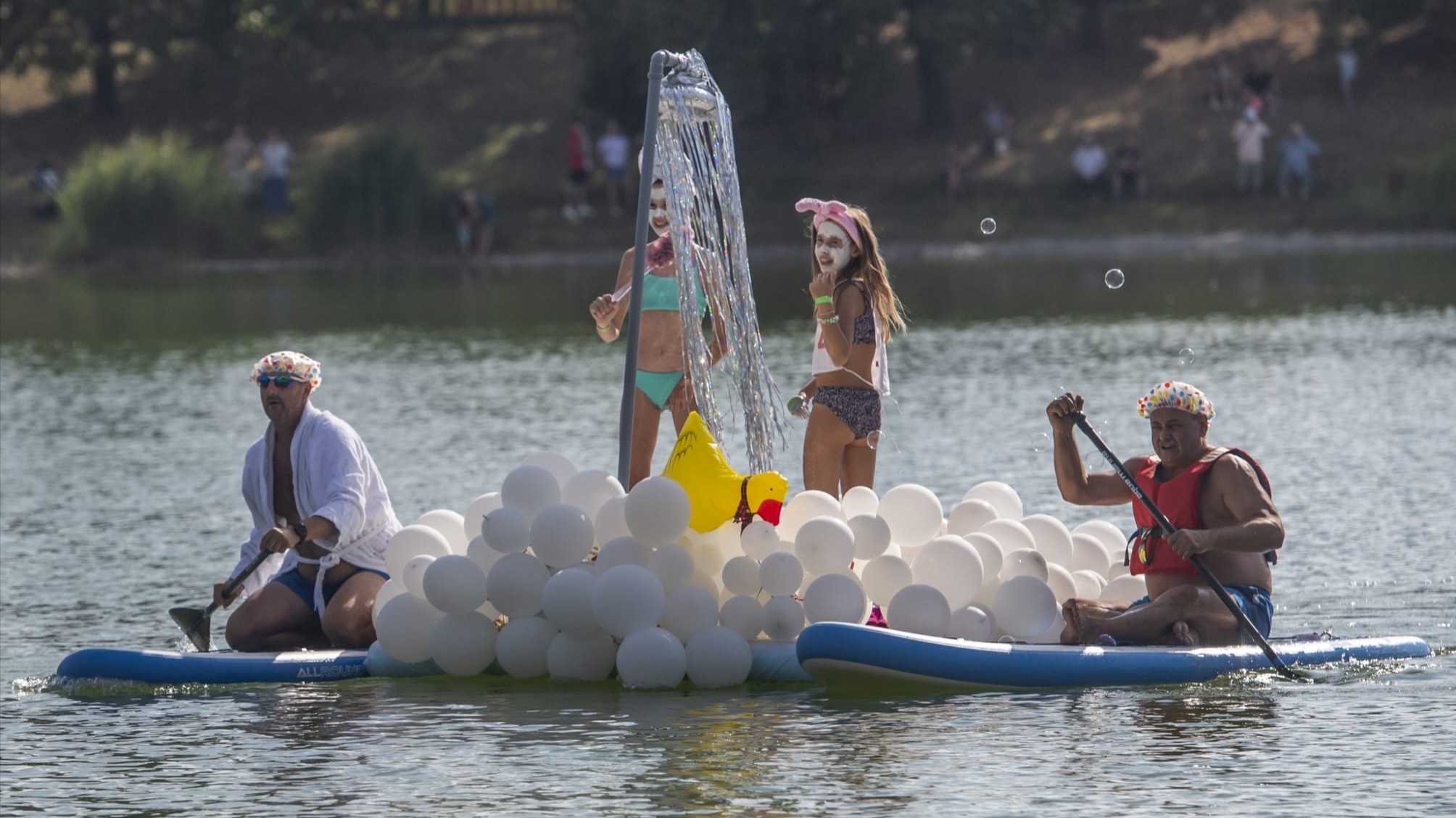 Na štart zábavných pretekov, ktoré uvádzal obľúbený moderátor Richard Vrablec, sa nakoniec postavilo šesť plavidiel: Petržalskí Vikingovia, Nivea lietadlo, Štrkovecká labuť, Bublinkový kúpeľ, plavidlo Slunce, seno, slnečnice a napokon Turbo slimáci. Posledne menovanú loďku vlastnoručne zostrojili traja cca desaťroční chlapci.