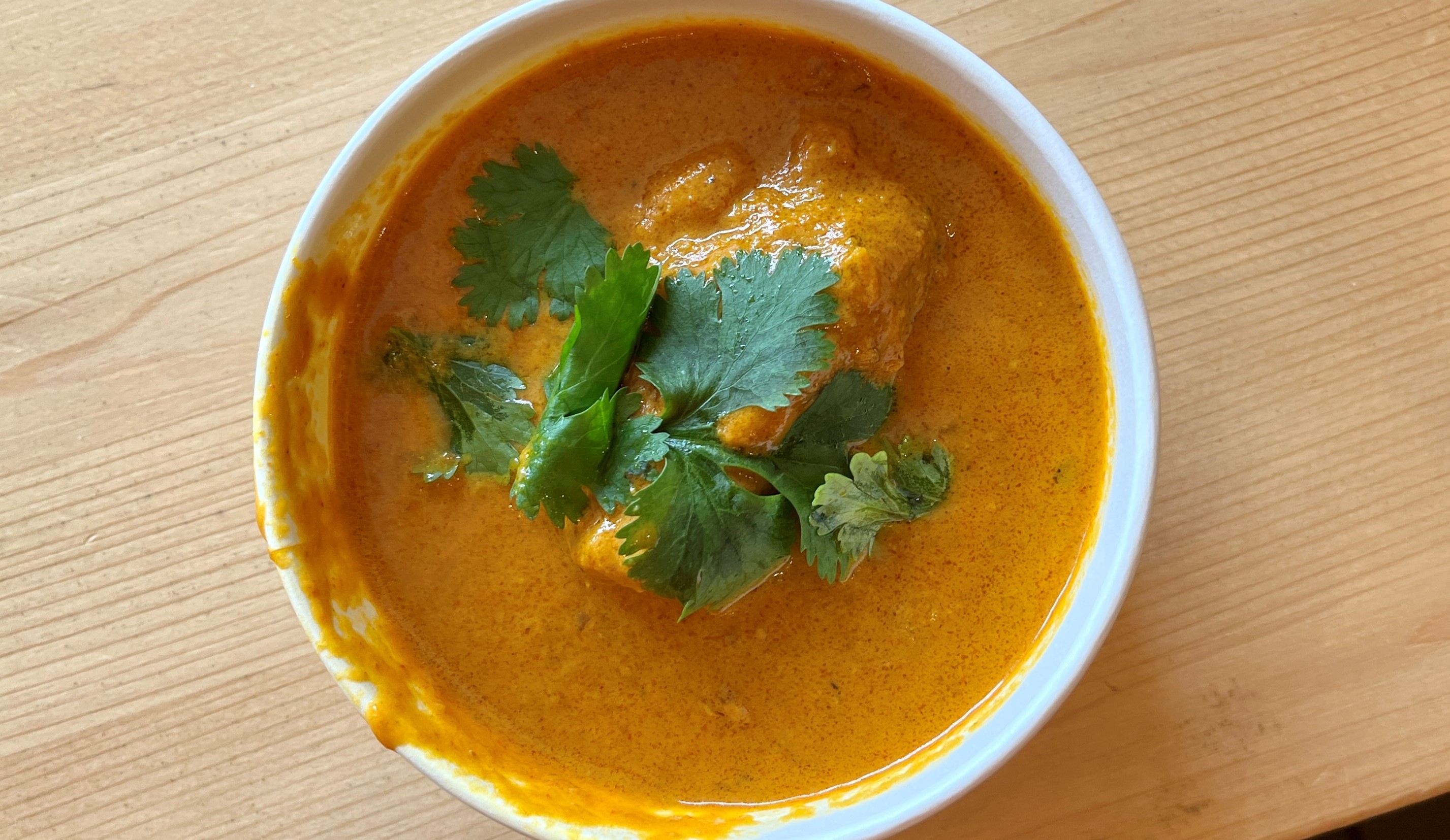 Testujeme aj vegetariánsku špecialitu Paneer Korma (7,90 €), tradičný indický syr so zeleninou varený v krémovej kurkumovej omáčke. Krásne farebné a voňavé jedlo je chuťovo miernejšie, ak sa vám žiada pikantného, na pulte je nachystaná domáca čili omáčka. Tú si môžete pridať k akémukoľvek jedlu. Robia ju z papričiek, paradajok, zázvoru a cesnaku, na konci však do omáčky pridajú med, takže ostrosť necítite v ústach príliš dlho. Mäkký paneer syr je výborný, čerstvý, zjedli by sme ho aj samotný.