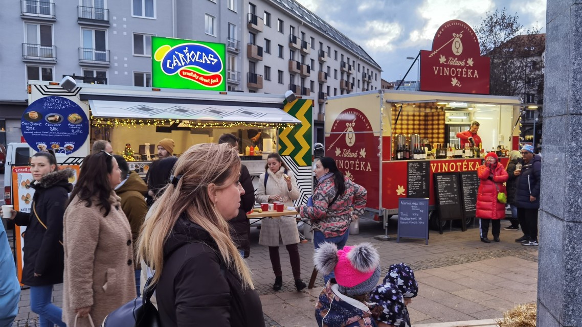 "Na námestí preto nenájdete klasické drevené stánky, ale rôzne mobilné stánky, foodtrucky, ktoré ponúkajú kuchyne z rôznych častí sveta. Na svoje si prídu priaznivci hamburgerov, belgických hranoliek, amerických hotdogov, sendvičov s trhaným mäsom, pelmeňov a šašlikov, paelly či veľmi populárneho corn dogu. Svoje miesto tu majú ale aj klasická cigánska pečienka, zemiakové placky, lokše či štrúdle a nechýbajú ani trdelníky či podpecníky. Ponuku dopĺňajú kvalitné punče rôznych druhov, varené vína, devínsky ríbezlák či medovina," priblížil Maroš Mačuha z OZ Skrášlime Slovensko.