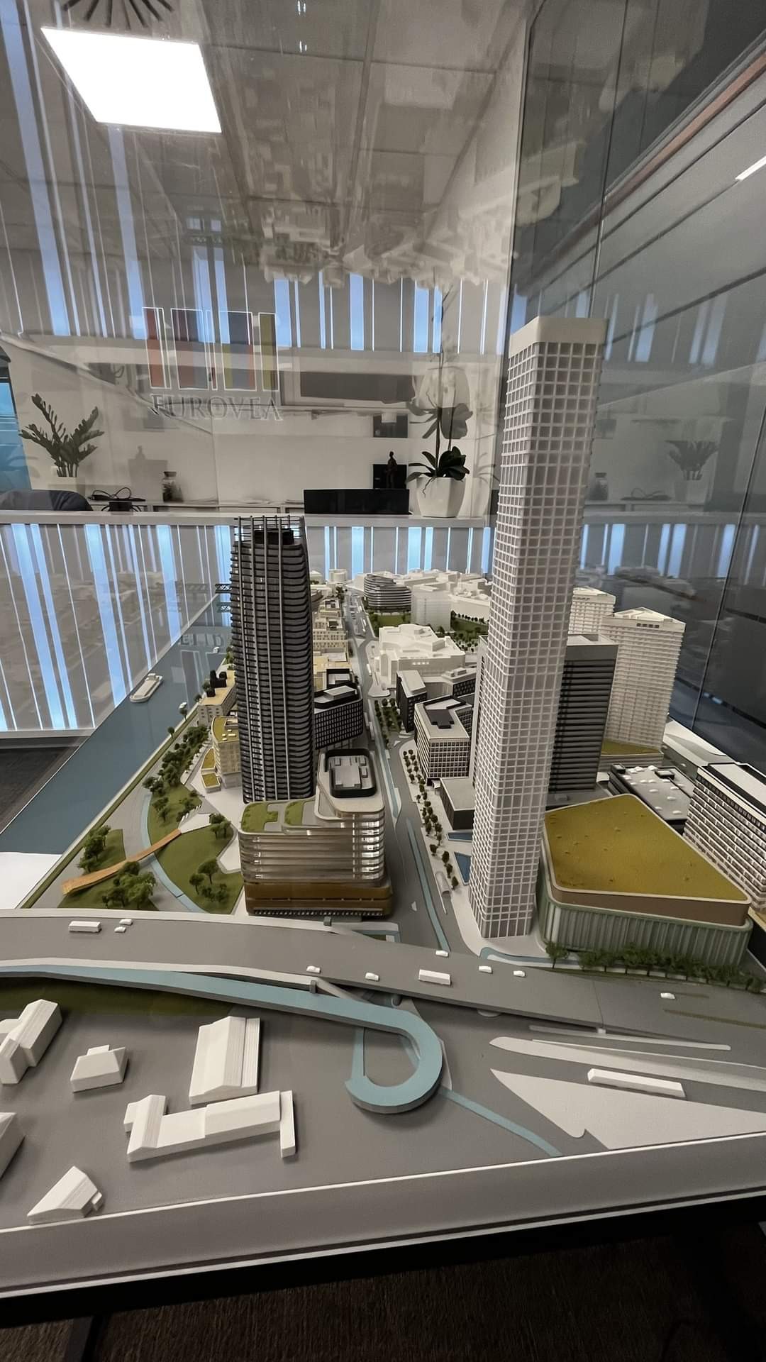 Na sociálnych sieťach sa v týchto dňoch objavili fotografie z modelu Eurovea City, kde je už takýto vysoký mrakodrap zobrazený. "Alternatíva zobrazená na fyzickom modeli Eurovea City je, čo sa týka intenzity zástavby a dopravnej záťaže, v intenciách platného územného rozhodnutia. Zároveň vytvára priestrannejšie verejné priestory," spresnil Suchý.