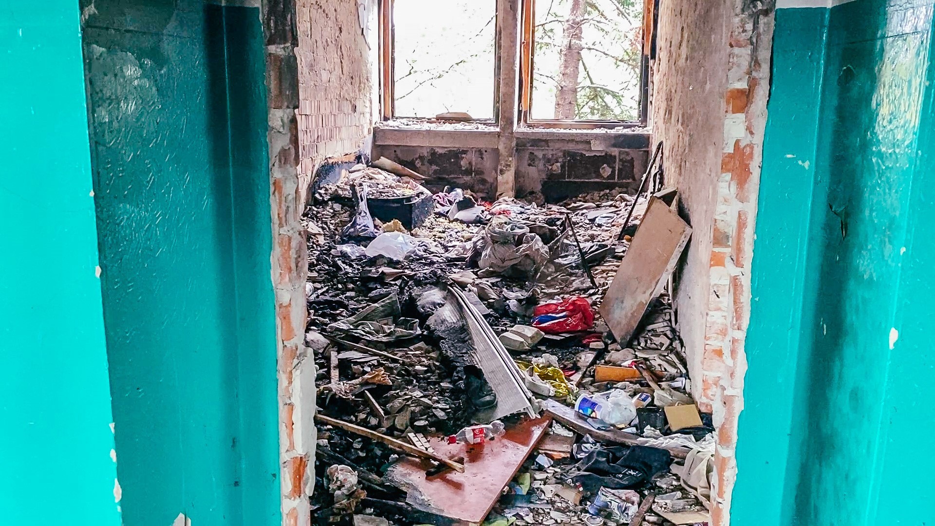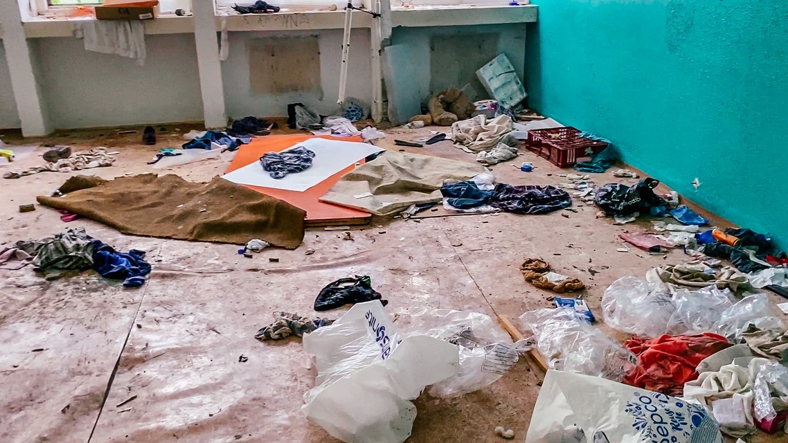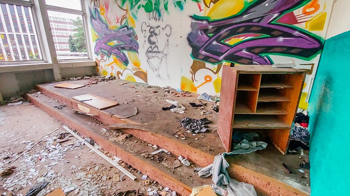 Pri pohľade do niekdajších učební a ďalších priestorov sa až nechce veriť, koľko a akého neporiadku je možné nahromadiť: vidíme špinavé šatstvo, rozbité sklá, obhorené dosky, ktoré boli zrejme kedysi nábytkom, aj polámaný rám z dverí, tiež rozhádzané injekčné striekačky i prázdne fľaše a igelitky, plastové debny... K tomu výkaly v miestnosti, ktorá zjavne poslúžila ako WC.