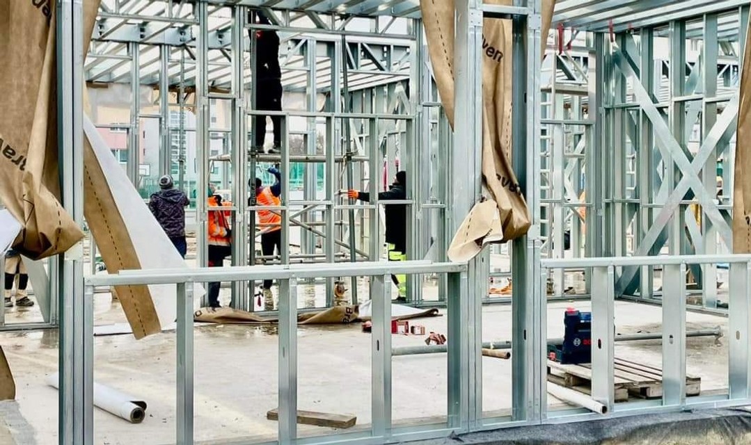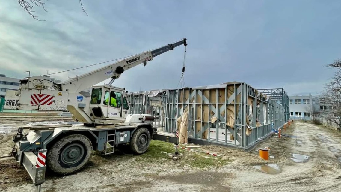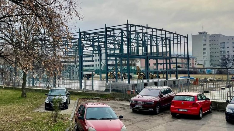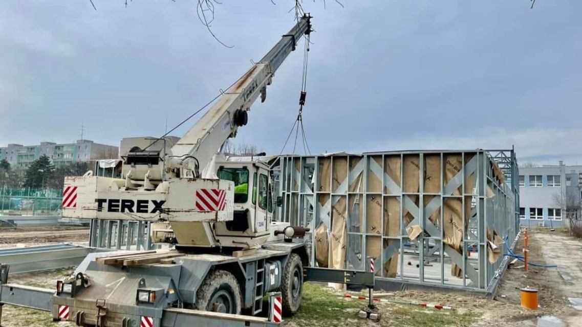 "Skelet telocvične je už hotový a v priestoroch budovy budúcich tried môžete vidieť schodiská a modulovanie priečok medzi triedami," približuje na sociálnej sieti stránka Ostredky.