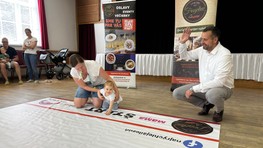 Rodičia mohli svoje deti k výkonom ľubovoľne motivovať, nesmeli sa ich však dotýkať. "Najčastejší motivačný predmet boli kukuričné chrumky," prezradil nám obľúbený moderátor i zakladateľ podujatia Richard Vrablec.