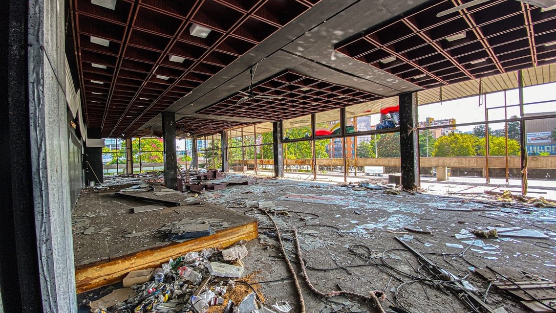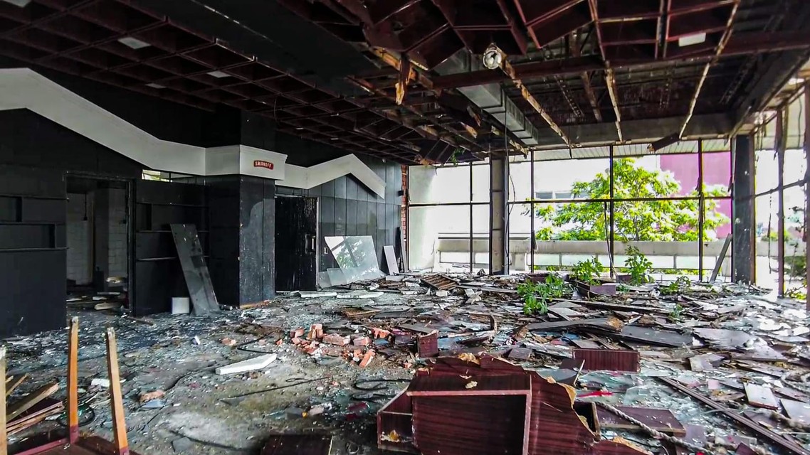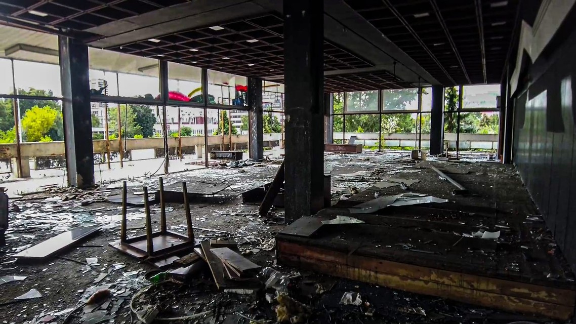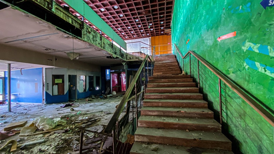 A skaza pokračuje. „Úplne ma zarazilo, že na poschodí už chýba celá bočná strana budovy, kde boli okná, všetky do jedného sú vymlátené. Ktokoľvek má teraz každý deň príležitosť, aby si odtiaľ niečo odniesol.“