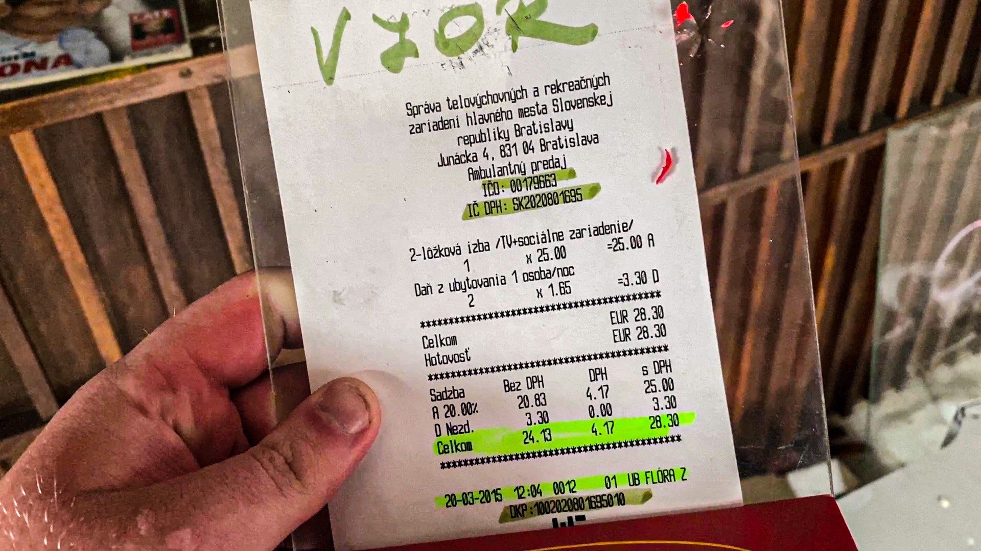 Iný pohľad do minulosti spustnutého objektu - vzor účtu za nocľah z roku 2015