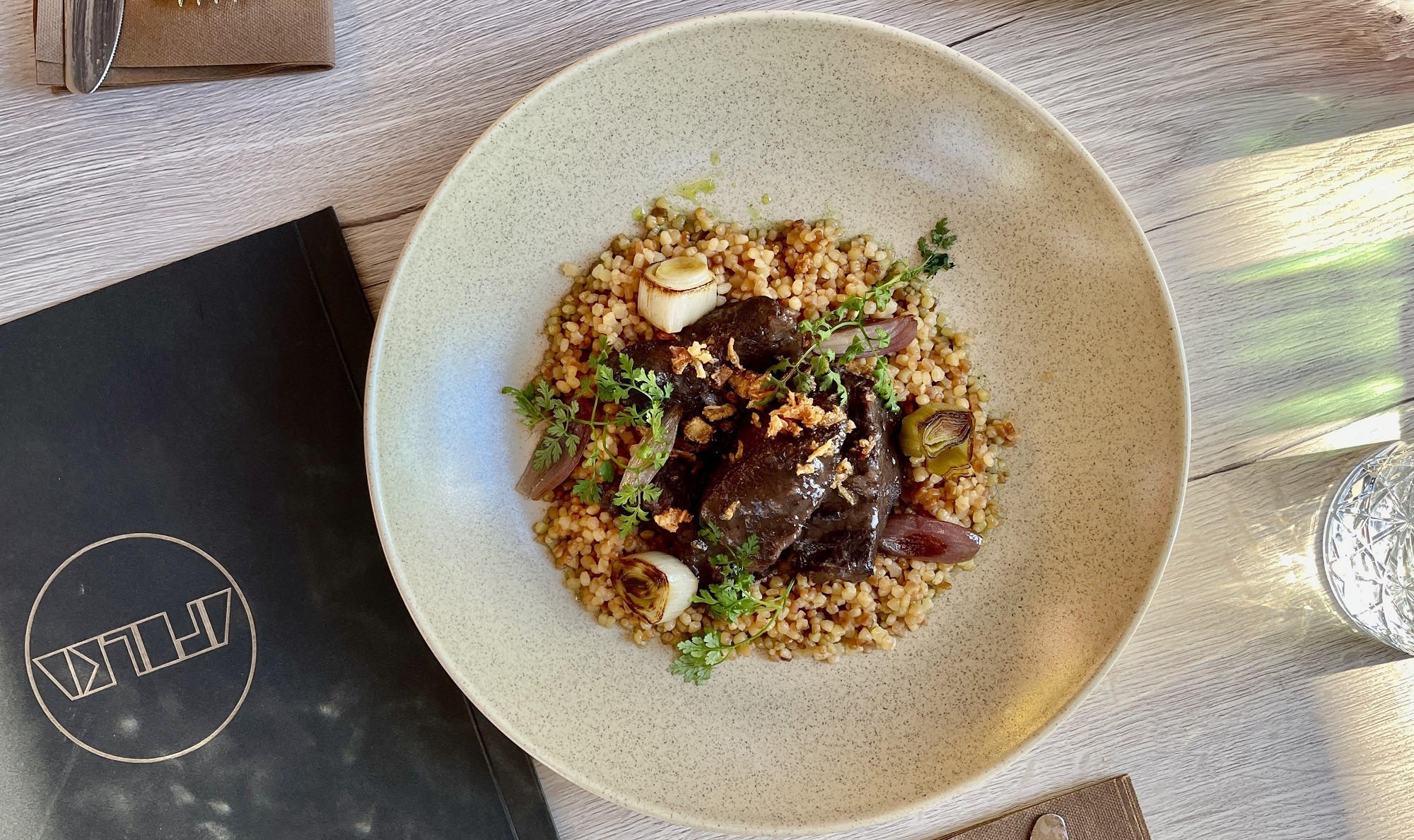 Otestovali sme i Hovädzie líčka (19,90 €) podávané s celozrnnou tarhoňou na bielom víne, konfitovanou šalotkou a pórom. Vyzdvihujeme spracovanie jedla, mäsko bolo mimoriadne jemné, chutné, ľahko sa oddeľovalo. Fajn bola aj príloha, šalotka sa s tarhoňou chuťovo výborné dopĺňali, určite by sme však zvládli väčšiu porciu.
