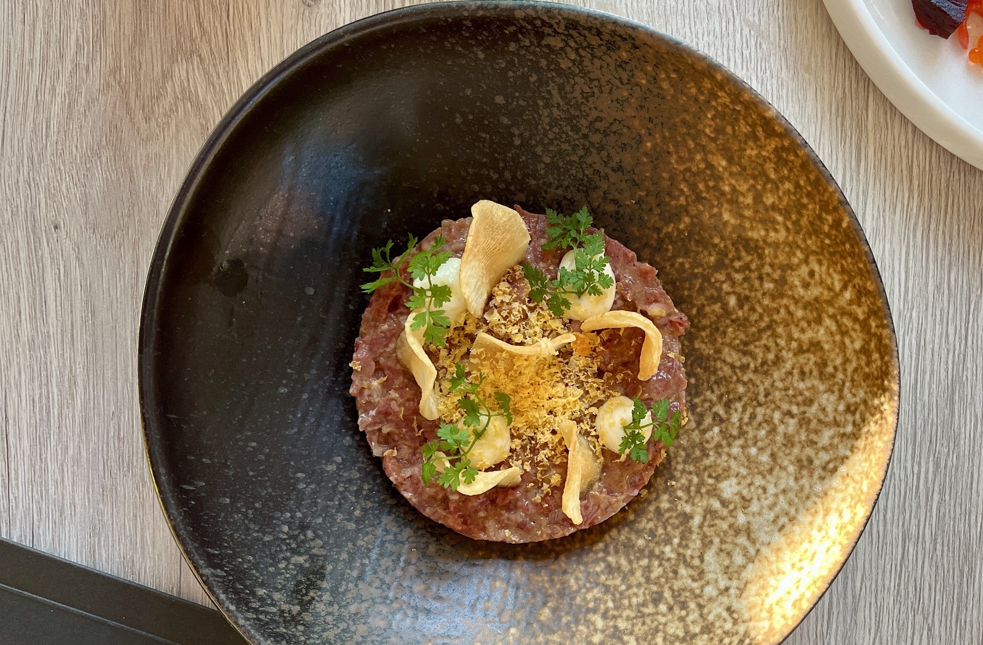 Hovädzí tatarák (14,90 €) v podaní Apolky hodnotíme ako zaujímavý gastronomický experiment. K delikátnemu bifteku sme dostali v hlbokej miske pečený cesnak, nakladané čili, ale takisto topinambur. Tento sladší variant zemiakov, pôvodom opäť zo Severnej Ameriky, spestril jemnú chuť, ktorá nikoho neurazí, čo bol asi zámer. Aj štruktúra tejto luxusnej pochúťky bola veľmi jemná a prezentácia elegantná.