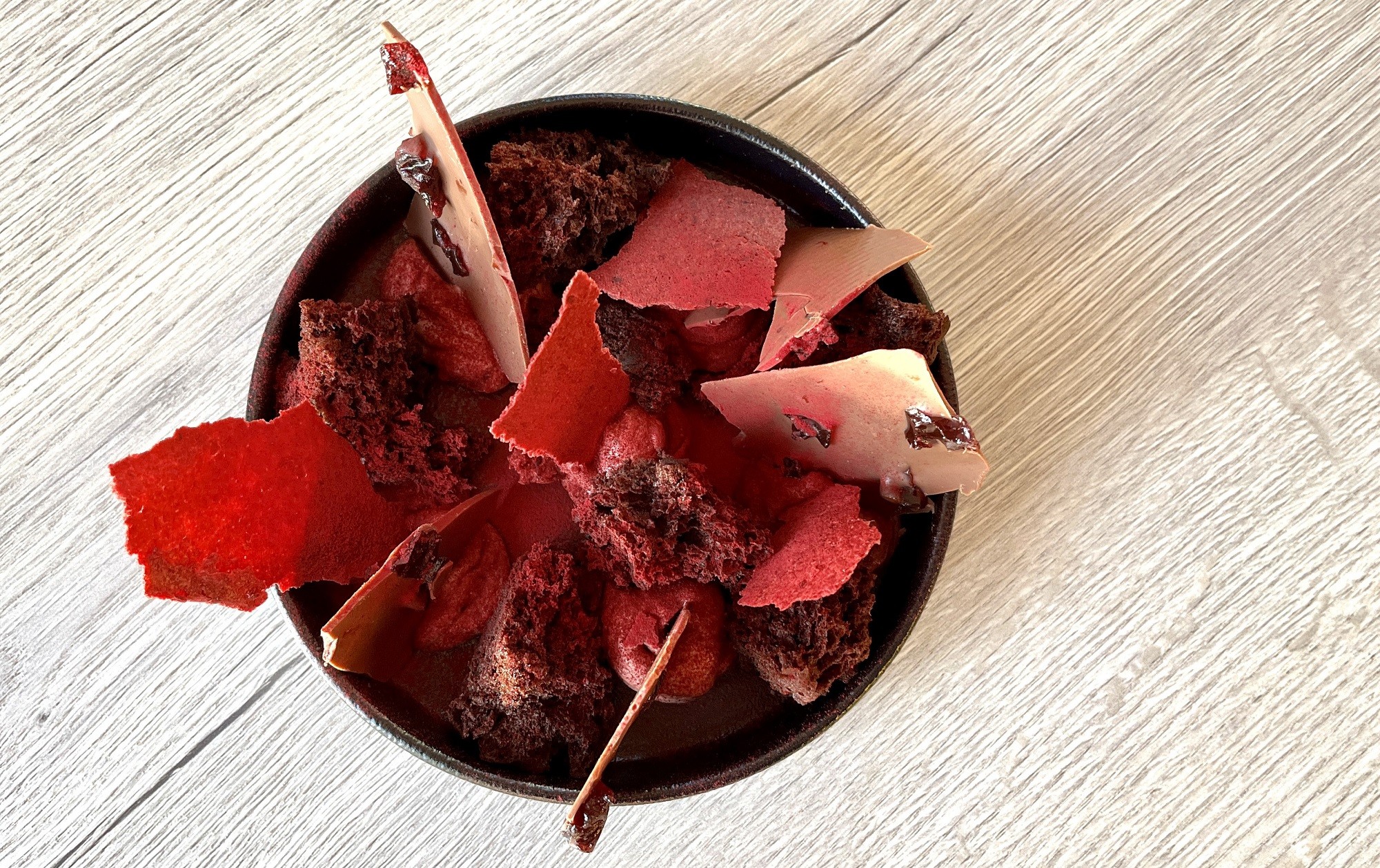 Napokon sme zvládli i dezert, kde sme stavili na Mousse z horkej čokolády (6,90 €). Bol vynikajúci, svieži, a zároveň prenikavý. Bila sa v ňom zemitá chuť červenej repy so sladkosťou maliny a k tomu horkosť čokolády... Veľmi dobrá kombinácia!