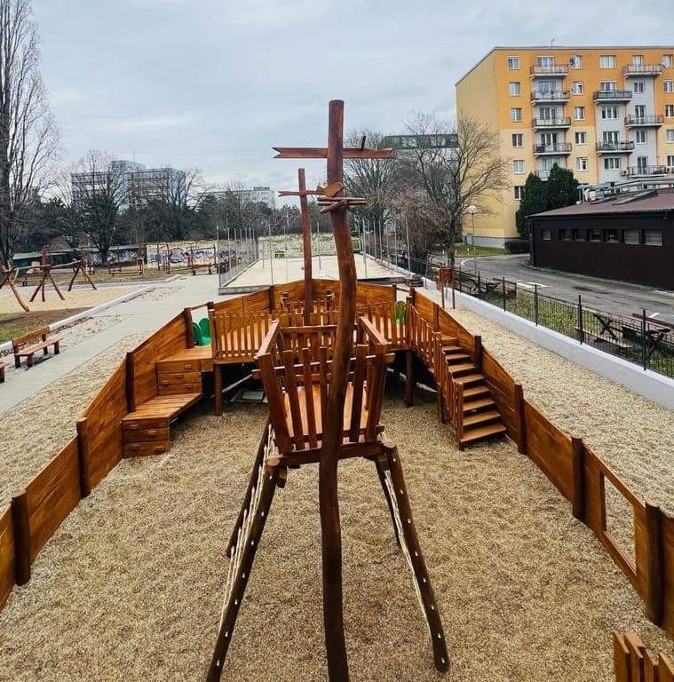 "Hlavným ťahákom ihriska sa čoskoro stane práve veľká drevená loď Nina z agátového dreva, ktorá zaberá plochu viac ako 100 metrov štvorcových. Okrem možnosti hrať sa na jej prednej a zadnej palube na plavčíkov a kapitánov na nej deti nájdu aj lezeckú stenu, lanovú sieť a šmykľavky," informoval na sociálnej sieti starosta Ružinova Martin Chren.
