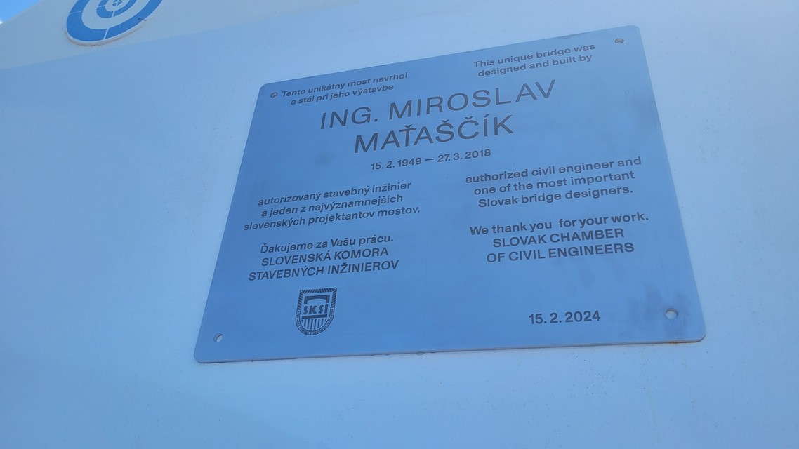 Na Moste Apollo pribudla pamätná tabuľa, ktorá pripomína jeho projektanta Miroslava Maťaščíka