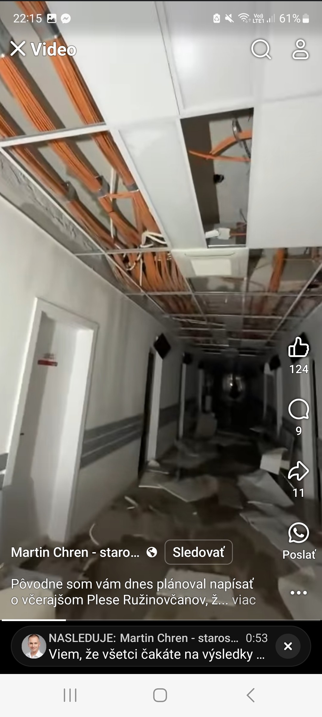 "Pôvodne som vám dnes plánoval napísať o včerajšom Plese Ružinovčanov, žiaľ, namiesto toho musím napísať o brodení sa. Konkrétne o brodení sa v niekoľkých centimetroch vody, ktorá dnes poobede zaplavila naše klientske centrum z prasknutej rúrky na prvom poschodí," priblížil Chren.