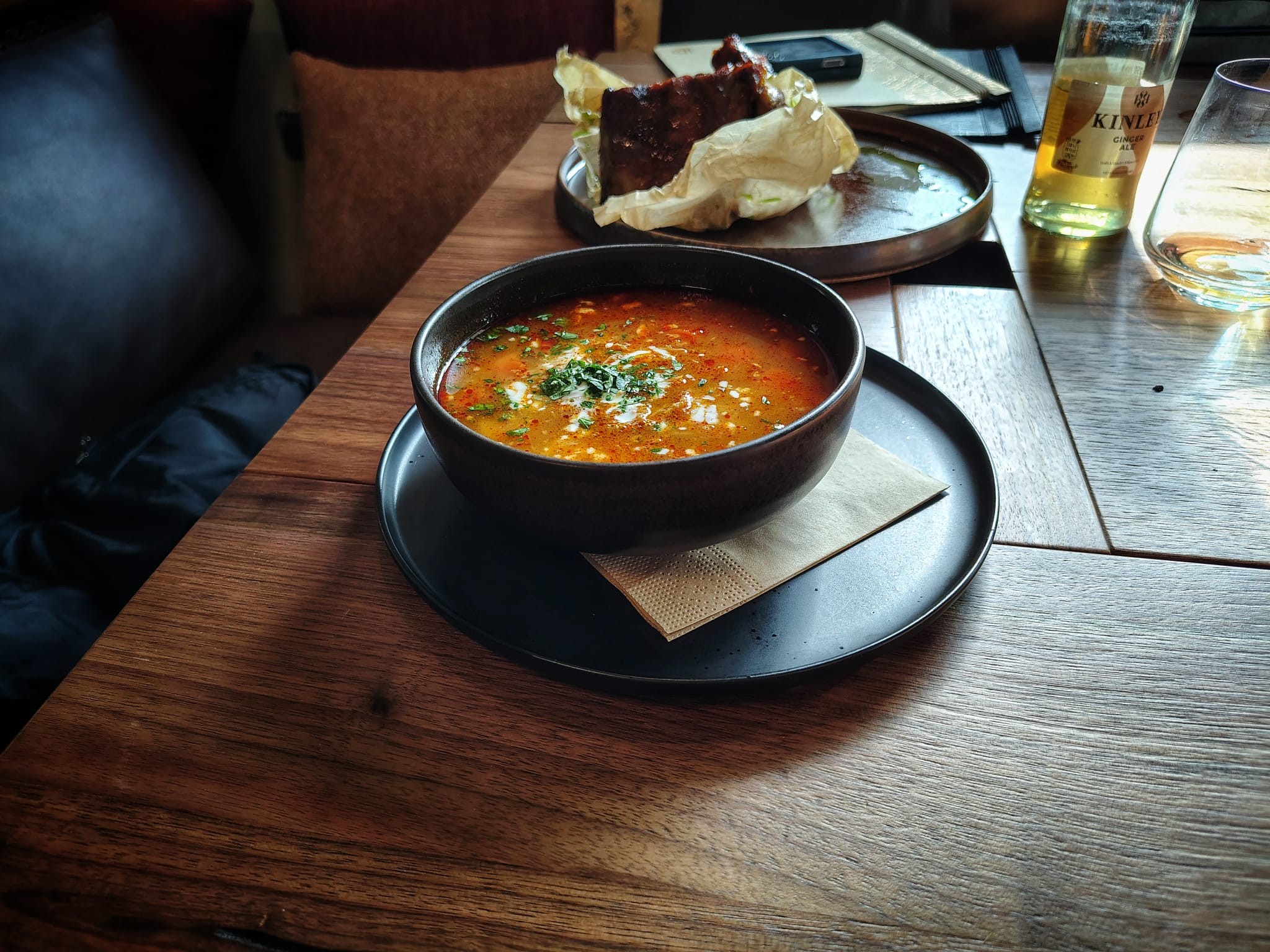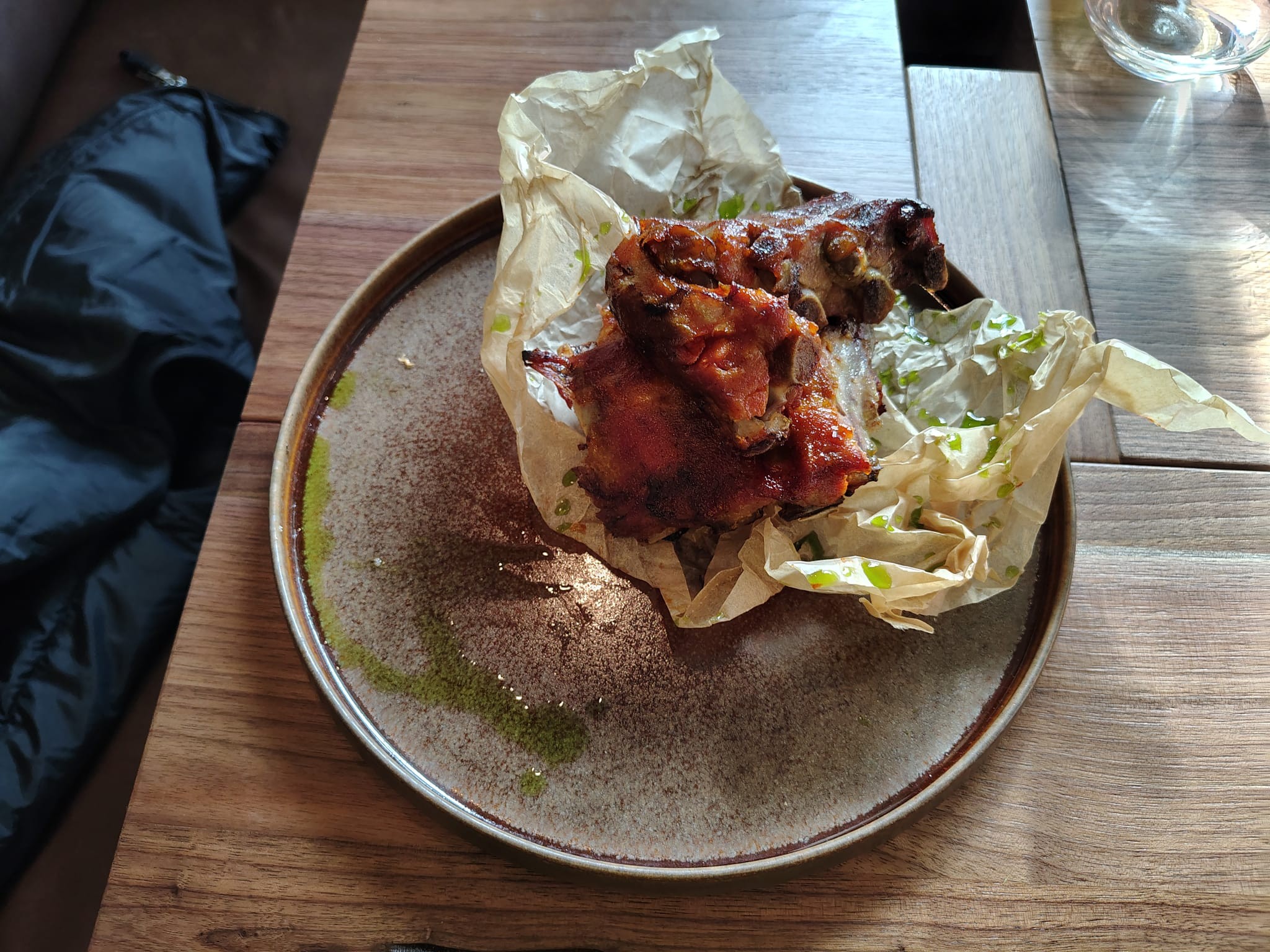 Pečené Bravčové rebierko (16,90 €) bolo vďaka poctivej dlhej príprave jemné, mäkké a šťavnaté, chuť však pre nás slabšia. Rebrá pripravujú s medom, s cesnakom aj s vlastným pivom, ale niečo tomu chýbalo, fakt je, že sme jedli už aj lepšie. Veľkosti porcie niet čo vyčítať, páčilo sa nám tiež servírovanie.