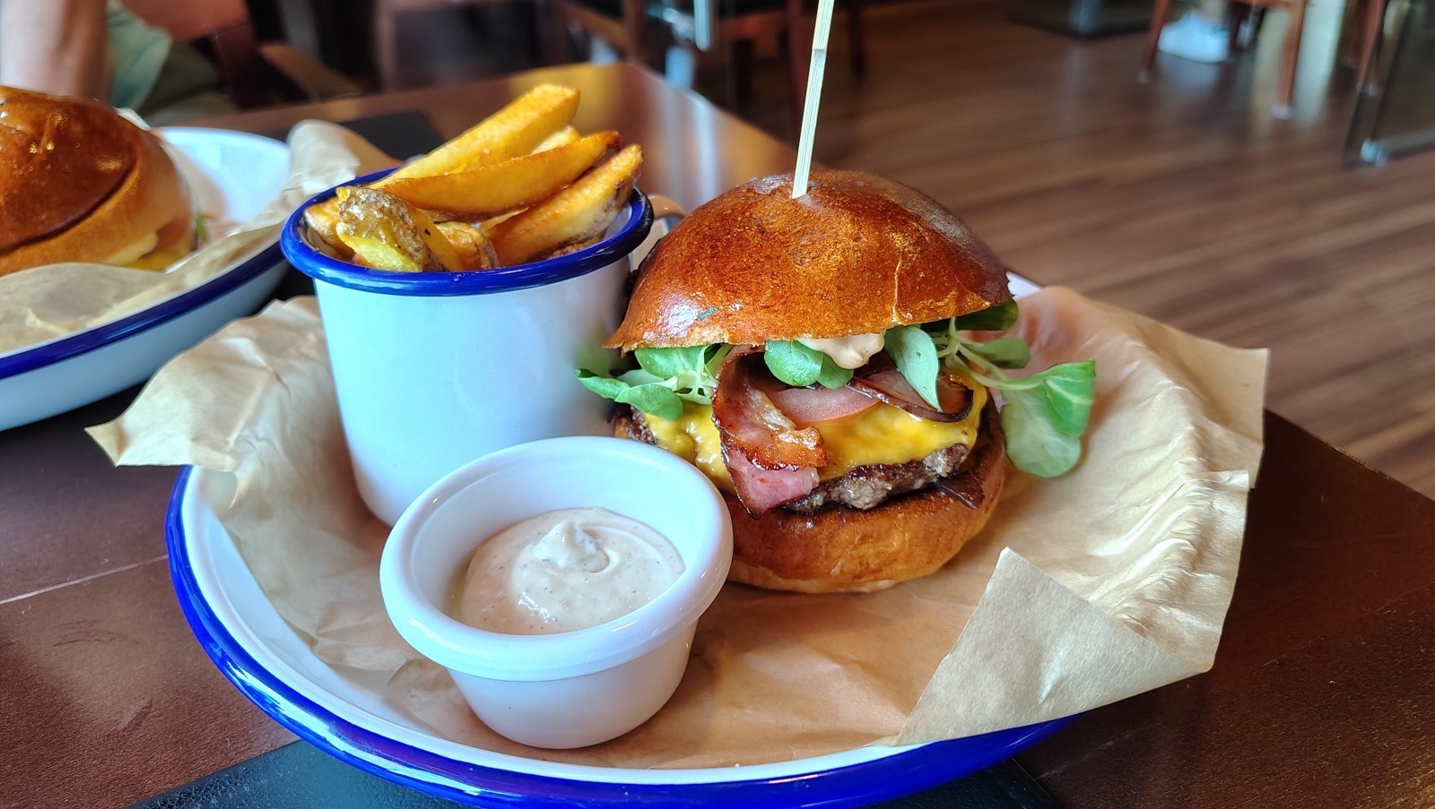 Ako prvý v ponuke je najpredávanejší Mama´s Original burger (10,50 €). Mäsko musíme rozhodne pochváliť, robia ho šťavnaté, stredne prepečené, čo nebýva všade zvykom, a chuť je výrazná, za to palec hore! Táto verzia burgera je pikantná vďaka papričkám jalapeño, ktoré máme veľmi radi a ani teraz nesklamali. Zato syr čedar a slaninku sme si chuťovo ani nevšimli a omáčka smoky mayo bola skôr priemerná, neurazí, ale ani neohúri. Vysoko hodnotíme komfort konzumácie, nič nám netieklo po prstoch ani nevypadávalo zo žemle.