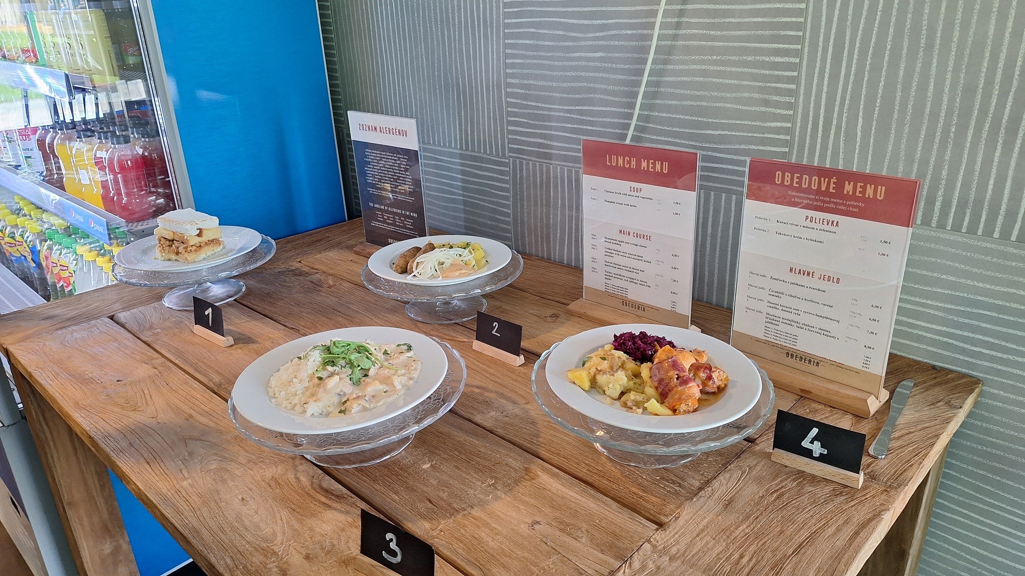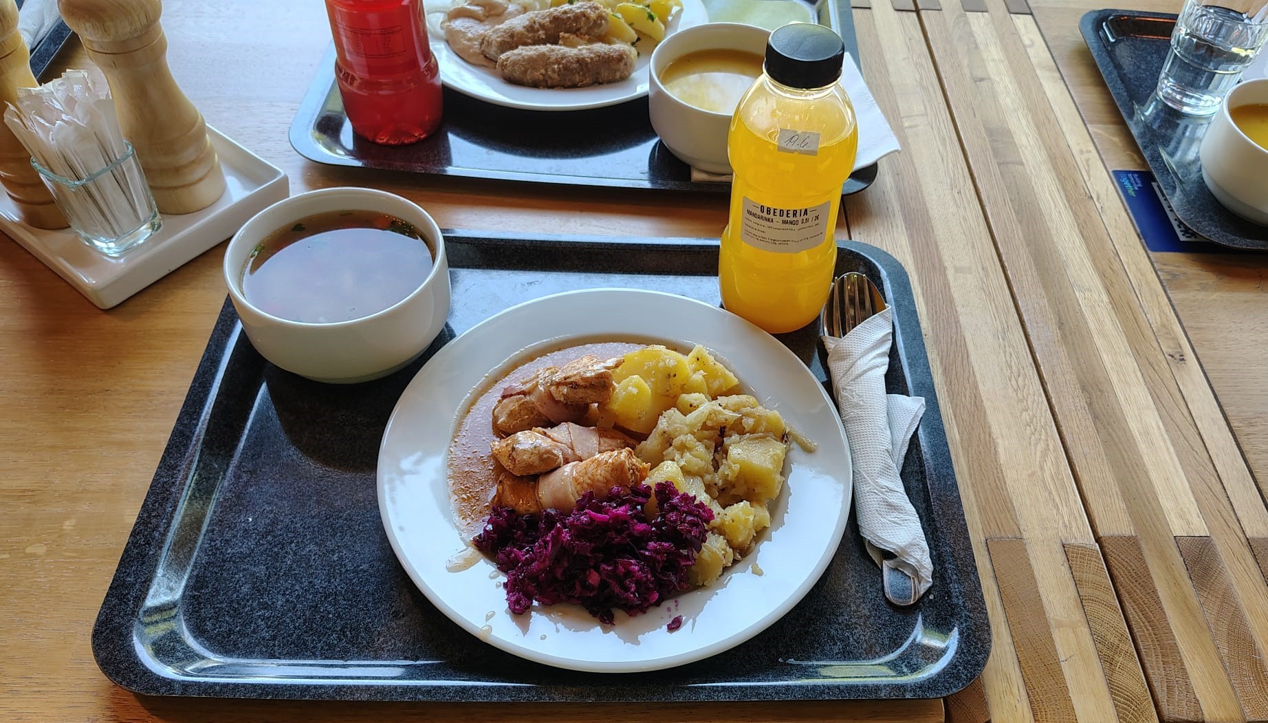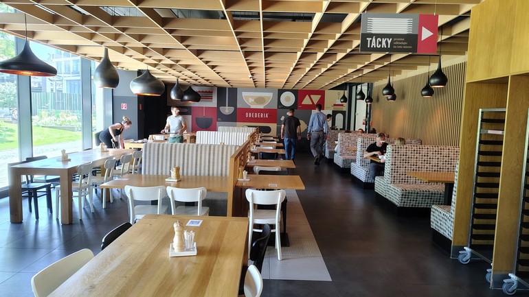 Všetky porcie boli pre nás primerané, ceny tiež, a chválime aj príjemné veľkorysé prostredie jedálne, kde si ľahko nájdete pokojné miesto pre seba i v čase obedňajšieho návalu. Nezažili sme zhon či chaos, všetko išlo hladko – nakoniec, jedlá z menu sú vystavené, takže sa pre to svoje rozhodnete rýchlo. Obederia sa nehrá na fine dinig, ale splní to, čo táckareň môže sľúbiť, niekedy i trochu viac.