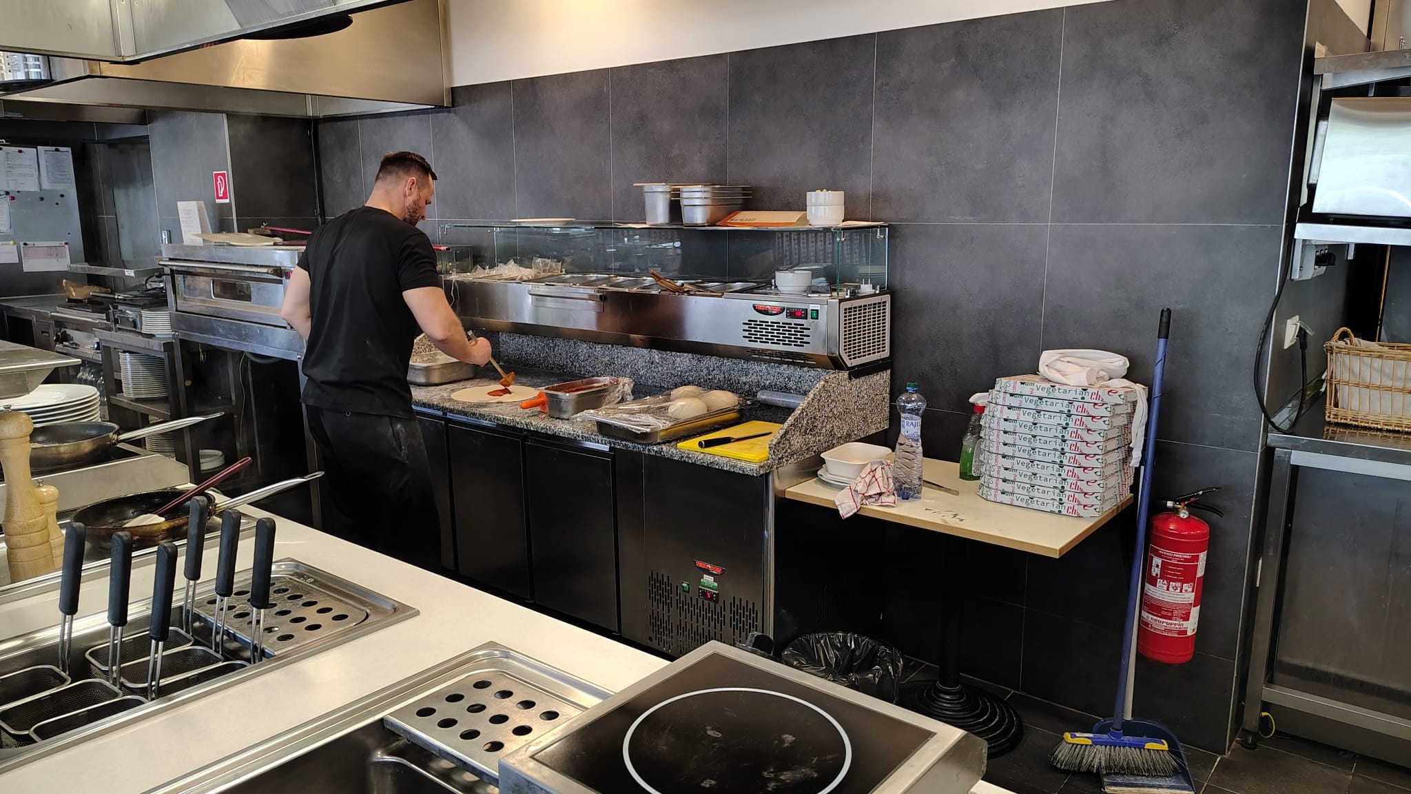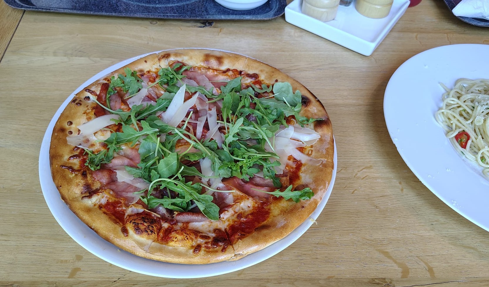 V sekcii Live Cooking sme si objednali pizzu Prosciutto (7,90 €), ktorú sme dostali horúcu rovno z pece, tak to má byť. Každú pizzu potierajú olivovým olejom, cesnakom a bylinkami. Na paradajkovom základe sme mali okrem sušenej šunky prosciutto mozarellu, veľké hobliny chutného parmezánu a kopec rukoly na samom vrchu. Ingrediencie boli určite z tých lepších. Cesto bolo tenké a jemne chrumkavé, syr vynikajúci, len prosciutto trochu slanšie, čo potláčalo chuť ostatných vecí.