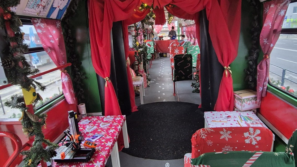 Električka je zariadená naozaj krásne. Nájdete tu krb, môžete si označiť pamätný cestovný lístok či vytlačiť niečo na 3D tlačiarni. Študenti, ktorých stretnete vo vozidle, vám ochotne poradia.