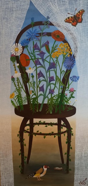 Názov výstavy Zdanie prezentuje hlbokú vnútornú pointu ukrytú v jednotlivých obrazoch a kresbách. Zakvitnutá stolička, šachovnica posiata divými makmi, stolička s nepomaľovaným plátnom v namaľovanom obraze s tou istou stoličkou...krabica s gigantickými rozmermi väčšia ako človek, žena čupiaca v pavučinovej sieti akoby nedokázala vzlietnuť, je pripútaná k neviditeľným putám, z ktorých sa nedokáže nikdy vymaniť... alebo je to len zdanie ? Záleží od uhla pohľadu ako sa divák zhostí danej témy.