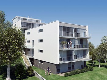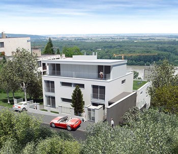 The complex will consist of two buildings, the upper “House A” having three flats (one flat and two maisonettes), the lower “House B” having four flats. The houses will incorporate altogether 12 garages, 2 lifts, and terraces with a pleasant south-west orientation giving view to the Danube and Austrian forests on the other side.