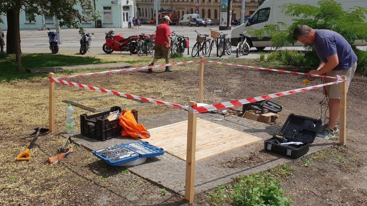 V rámci revitalizácie parčíka na Hurbanovom námestí prebieha aj oprava existujúcich akustických hracích prvkov.