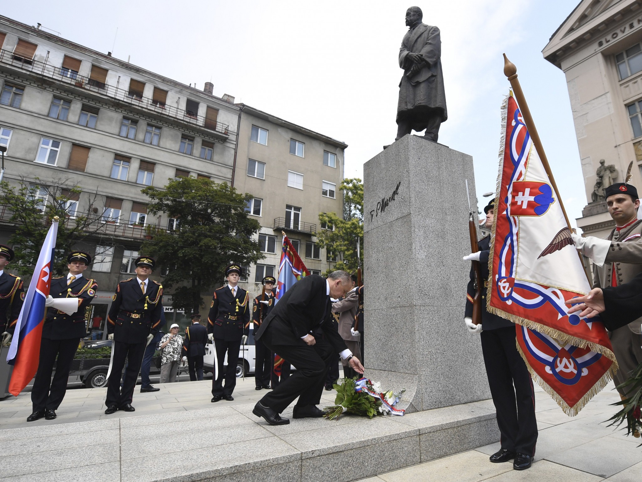 Dominantou Masarykovho námestia je jeho socha, ku ktorej Andrej Kiska položil kyticu kvetov...