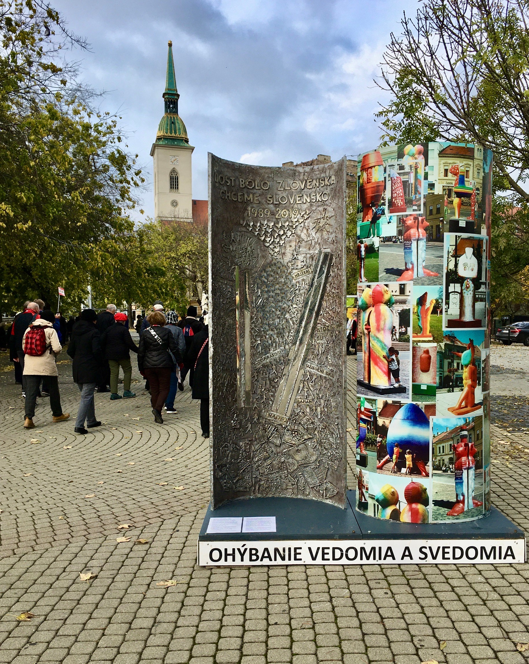 Plastika Ladislava Gajdoša je na Rybnom námestí inštalovaná pri príležitosti 30. výročia Nežnej revolúcie a pozrieť si ju budete môcť do cca. 20. novembra. "V mojej tvorbe ako výtvarník venujem značnú časť témam, ktoré hýbu spoločnosťou a každým z nás... Socha - memento pre nás všetkých - svojou formou pripomína otvorený stĺp, ktorý odhaľuje nielen javy posledných 30 rokov, ale aj udalostí rokov pred 1989, ktoré k nemu viedli. Vonkajší "obal" tohto otvoreného valca je formou dokumentu svedectvom toho, ako som ja osobne tým posledným 30 rokom nastavil zrkadlo a stvárnil do mojich diel," vysvetlil nám akademický sochár Ladislav Gajdoš.