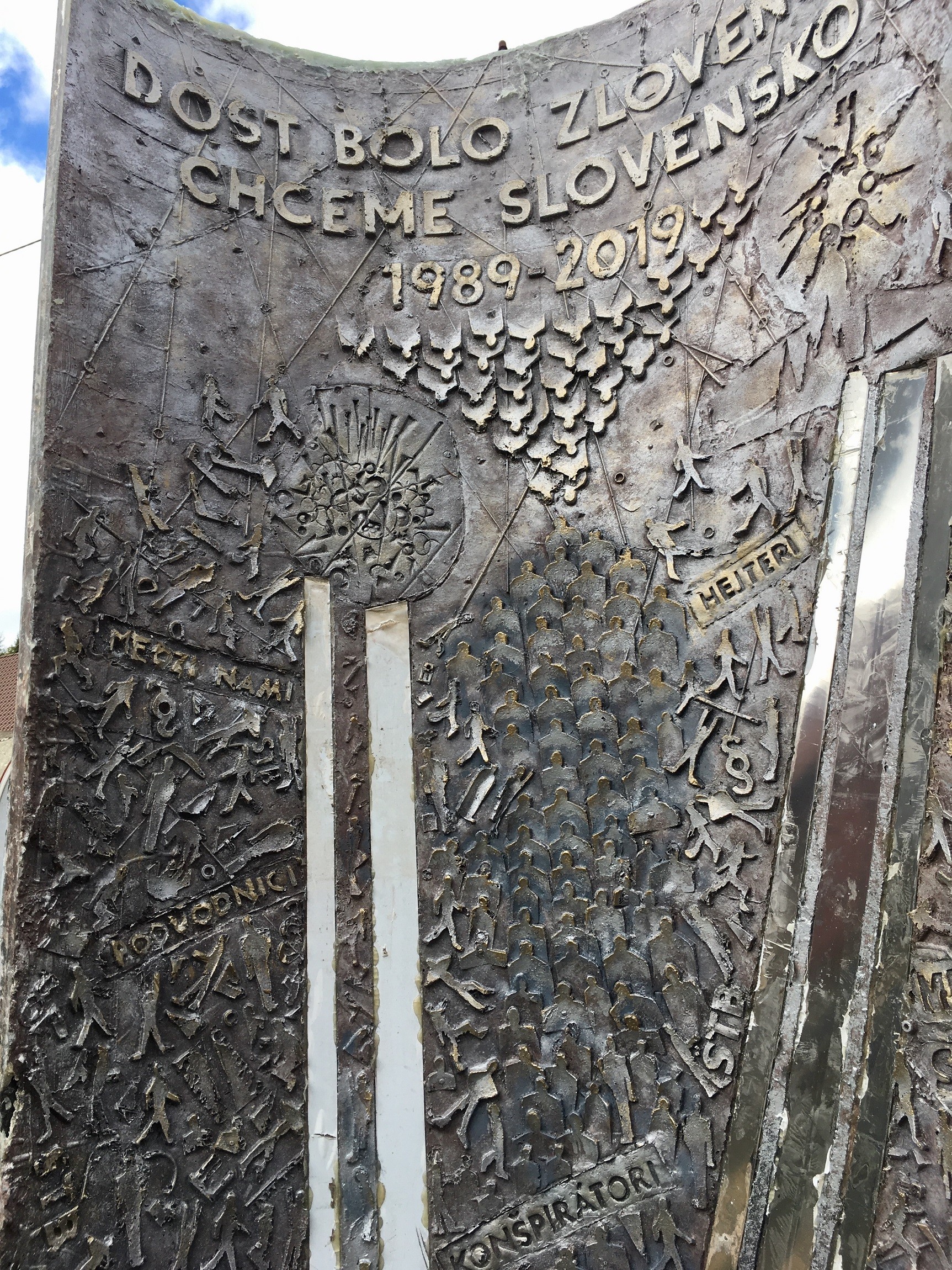"Symbolická plastika – kompozícia v konkávnych a konvexných oblúkoch - nesie na svojom povrchu a vyžaruje navonok i z vnútra mnohé odkazy, výzvy i apel. Sú to čísla rokov 1938 – 1948 – 1989 – 2019. Sú to slová – texty uzlových rokov i drámy premien: Československo, Protektorát, Ideologická okupácia a pre nás stále aktáulne „Dosť bolo ZLOvenska, chceme Slovensko“. K tomu aj slová „prenasledovanie“ a „strach“. I slová trpkého poznania a identifikácie toho a tých, ktorí sú medzi nami: ŠtB, podvodníci, klamári, zlodeji, kolaboranti, konšpirátori, mafiíni, trollovia, užitoční idioti, … . K tomu iba jedno, jediné slovíčko sochára, občana, človeka L.Gajdoša: „Nádej“. História našej Zeme v 20. storočí i v súčasnosti poznala však a pozná aj tento pojem, stav, situáciu i ľudskú aktivitu: Nádej. Je súčasťou vedomia a svedomia, histórie a vývoja, hľadania a nachádzania v zložitých štruktúrach globálnej spoločnosti nášho štátu, Európy i sveta," dodal odborník.