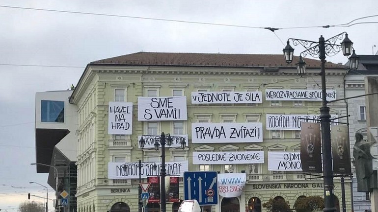 FOTO: Budova galérie je už pripravená na oslavy 30. výročia nežnej revolúcie - pamätáte si jej heslá?