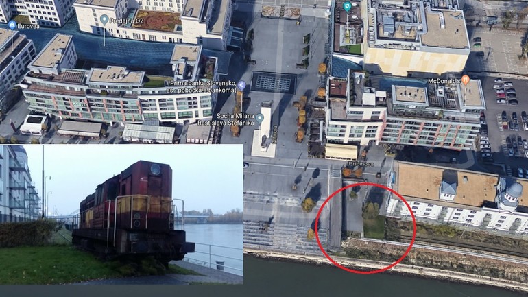 Dnes ráno sa návštevníkom nákupného centra Eurovea naskytol pohľad na lokomotívu obtiahnutú červenobielou páskou, ktorá mala zabrániť ľuďom, aby sa k nej priblížili. Pravdepodobne sa ešte dnes budú príčiny vykoľajenia rušňa vyšetrovať. Podľa informácií portálu tvnoviny.sk patrí lokomotíva spoločnosti ZSSK Cargo, ktorá na Slovensku zabezpečuje nákladnú dopravu.