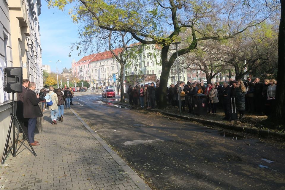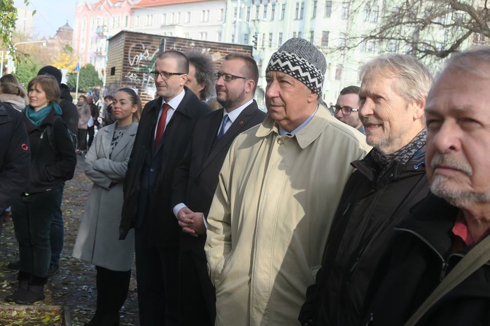 Z lídrov Nežnej revolúcie 1989 sa slávnostného odhalenia tabule zúčastnil poslanec NR SR Ján Budaj, ktorý mal na hlave slávnu „budajku“ – čiapku z obdobia mohutných protestov spred 30 rokov.