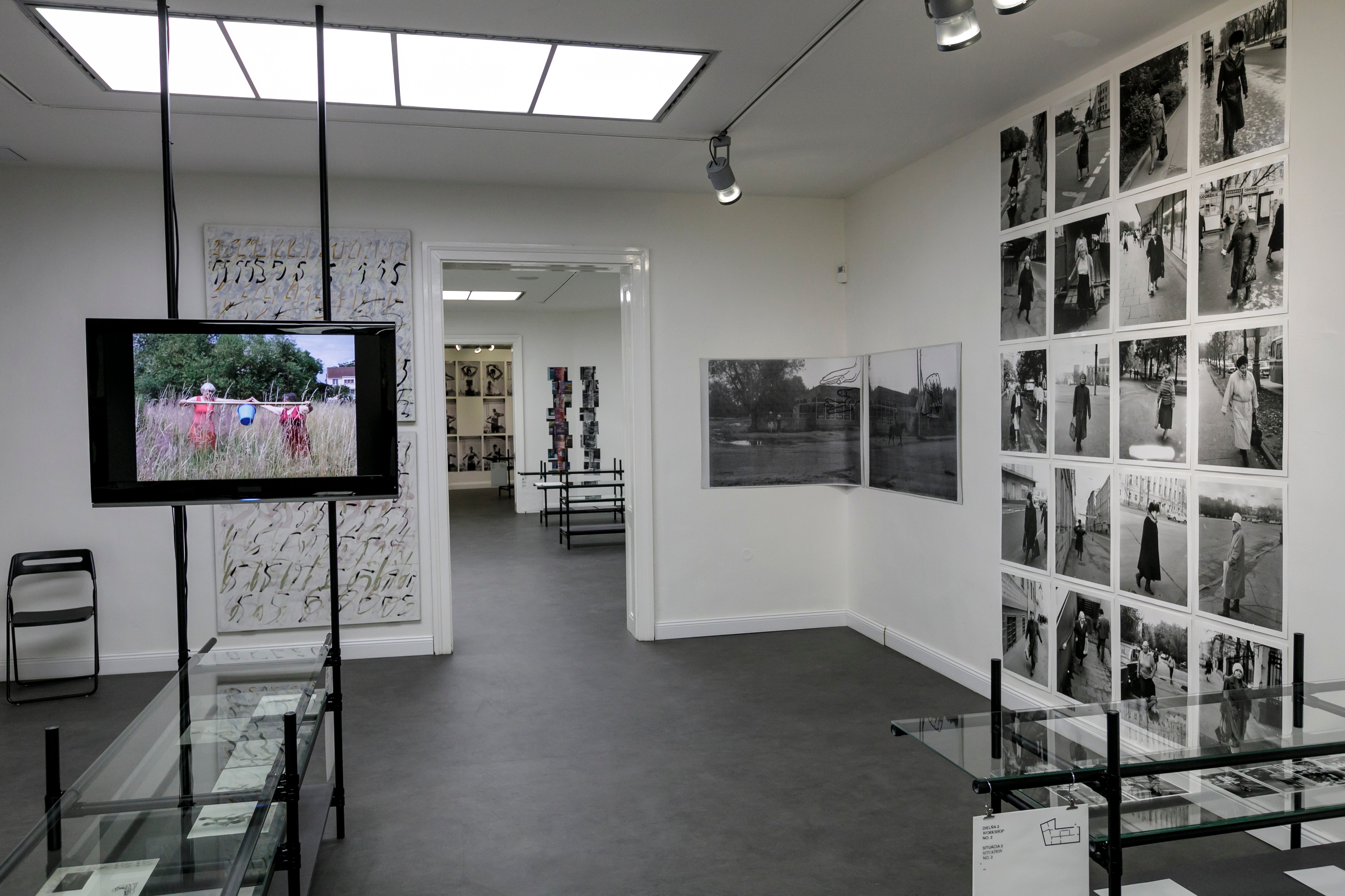 Táto výstava je teda expozíciou diel aj pracovnou výstavou. Dáva verejnosti nielen možnosť vidieť a chápať vzťahy medzi jednotlivými dielami tejto autorky v danom výbere. Je tu sedem situácií, teda sedem rôznych usporiadaní prác v siedmich miestnostiach: päť dielní, videokino a videolaboratórium, ale umožňuje im aj navštevovať galerijné prostredia ako dejúce sa rámce práce, sedem miestností meniacich sa na sedem scén, teda dejiská rozpracovaného či pripravovaného diela (work in progress).
