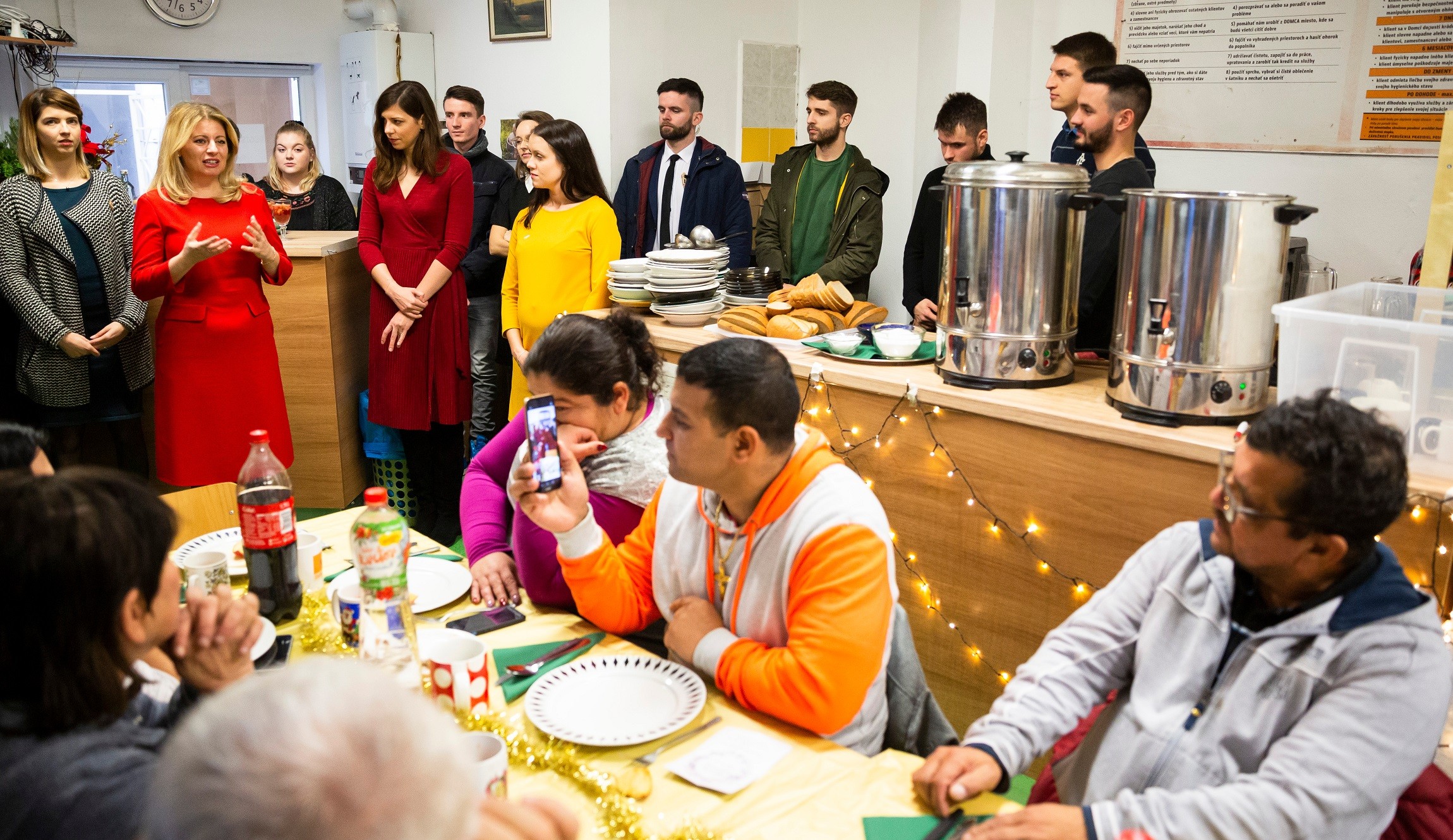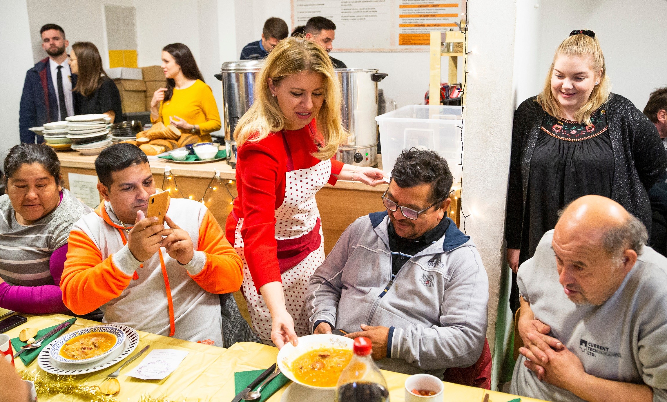 FOTO: Prezidentka Zuzana Čaputová spravila Vianoce ľuďom bez domova - dokonca ich aj obsluhovala...