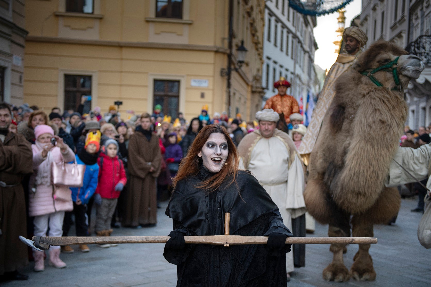 V sprievode nechýbala ani "zubatá" smrť s kosou, ktorú stvárnila artistka a fakírka Kristína Slováková. Trojkráľový sprievod vyvrcholil na Hlavnom námestí, kde bolo postavené pódium, na ktorom príchod troch kráľov už očakával malý Ježiško so svojimi pozemskými rodičmi - Pannou Máriou a jej manželom - svätým Jozefom.