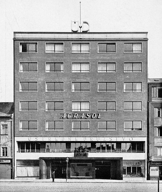 V tridsiatych rokoch postavili na mieste meštianskeho domu oproti starej tržnici (vtedy Námestie republiky číslo 13) podľa projektu architekta Emila Belluša administratívnu budovu Ústredného družstva (dokončená 1935). Moderná železobetónová stavba s veľkým portálom z čiernej leštenej žuly a obkladačkami obloženou fasádou bola prvou z komplexu štyroch podobných administratívnych budov.