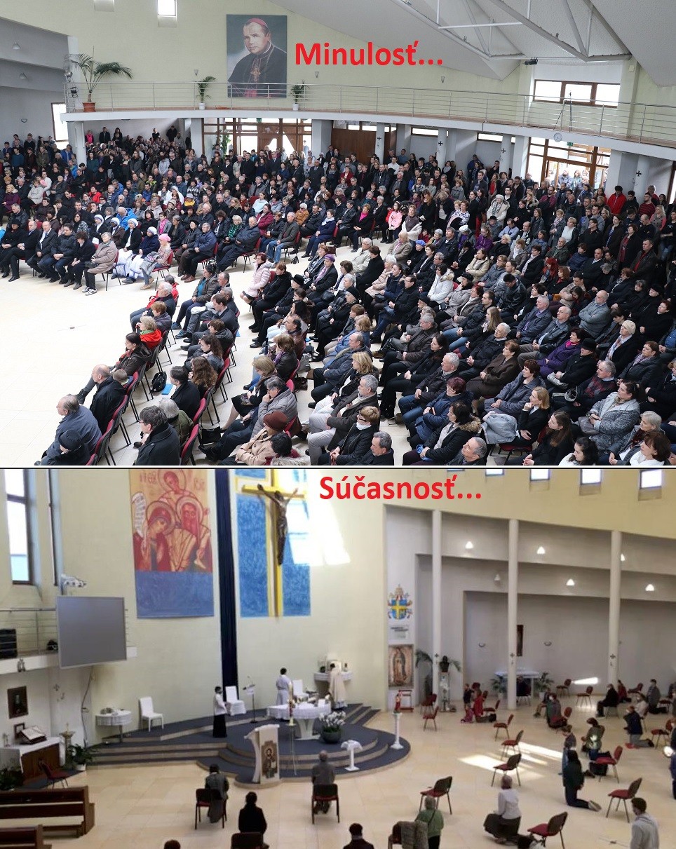 Omše v týchto dňoch sú kratšie, aj preto, že sa nespieva, ale len recituje. Sväté prijímanie sa podáva len na ruku. Znak pokoja sa vynecháva, alebo sa nahrádza úklonom hlavy. Sväteničky zostávajú prázdne. V laviciach chýbajú spoločné knižky, texty, či ružence. Mnohí veriaci sa s tým ochotne vyrovnajú, pretože omšu v kostole im nedokázalo nahradiť nič. Tak uvidíme, či túto výsadu (napríklad divadlá na rovnakom princípe ako kostoly fungovať nemôžu) ocenia disciplinovanosťou.