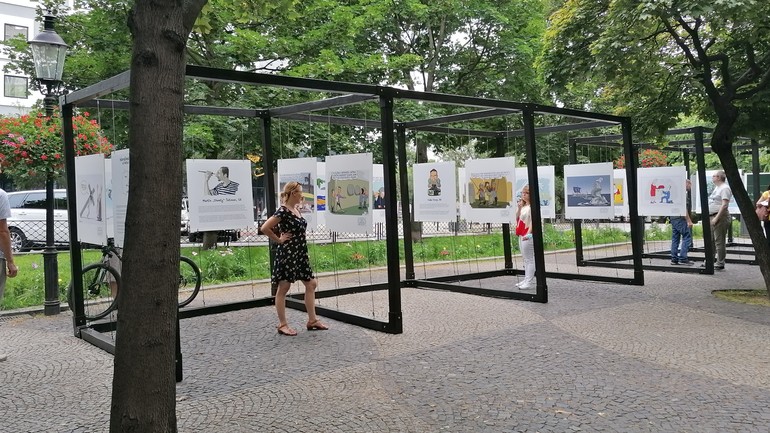 Karikatúry z dielne šestice ich výborných autorov si môžete až do 13. júla pozrieť na Hviezdoslavovom námestí v Bratislave, ktoré sa stalo miestom Medzinárodnej výstavy politických karikatúr.