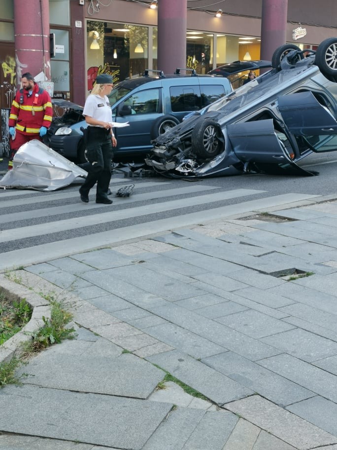 FOTO: Na Kollárovom námestí sa zrazili dve autá - v tom čo sa prevrátilo, sedeli manželia Traubnerovci...
