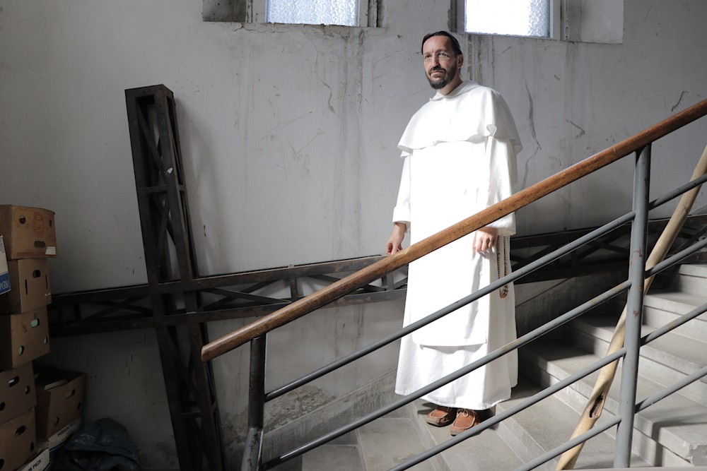 Dominikánsky kňaz Dominik Roman Letz stojí pri kríži, ktorý sa kedysi týčil na veži kostola...