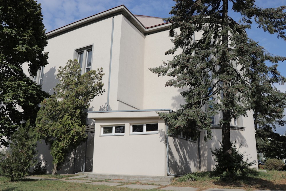 Veža bola pôvodne na mieste, kde dnes stojí táto prízemná prístavba...