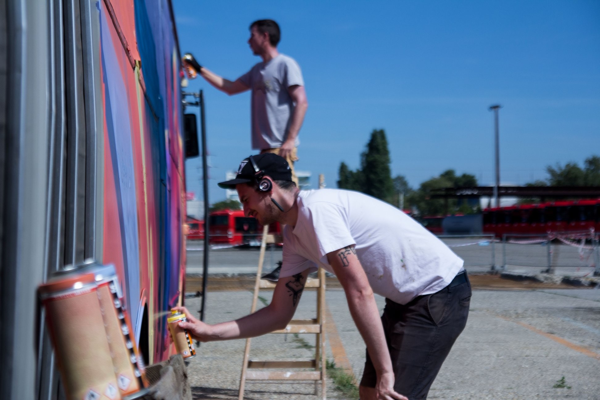 O dizajn štyroch autobusov Karosa B741 sa postarali umelci FinDac, Fat Heat & TransOne, Jana und JS a domáci výtvarník SKC. "Už v minulosti sme pracovali s dopravnými prostriedkami, napríklad električkami, vlakmi, ale toto je prvá flotila, preto aj dostala názov Street Art Fleet," priblížil Lukačka. Zblízka si môžu návštevníci autobusy pozrieť počas soboty na Kamennom námestí. Neskôr budú brázdiť ulice Bratislavy.