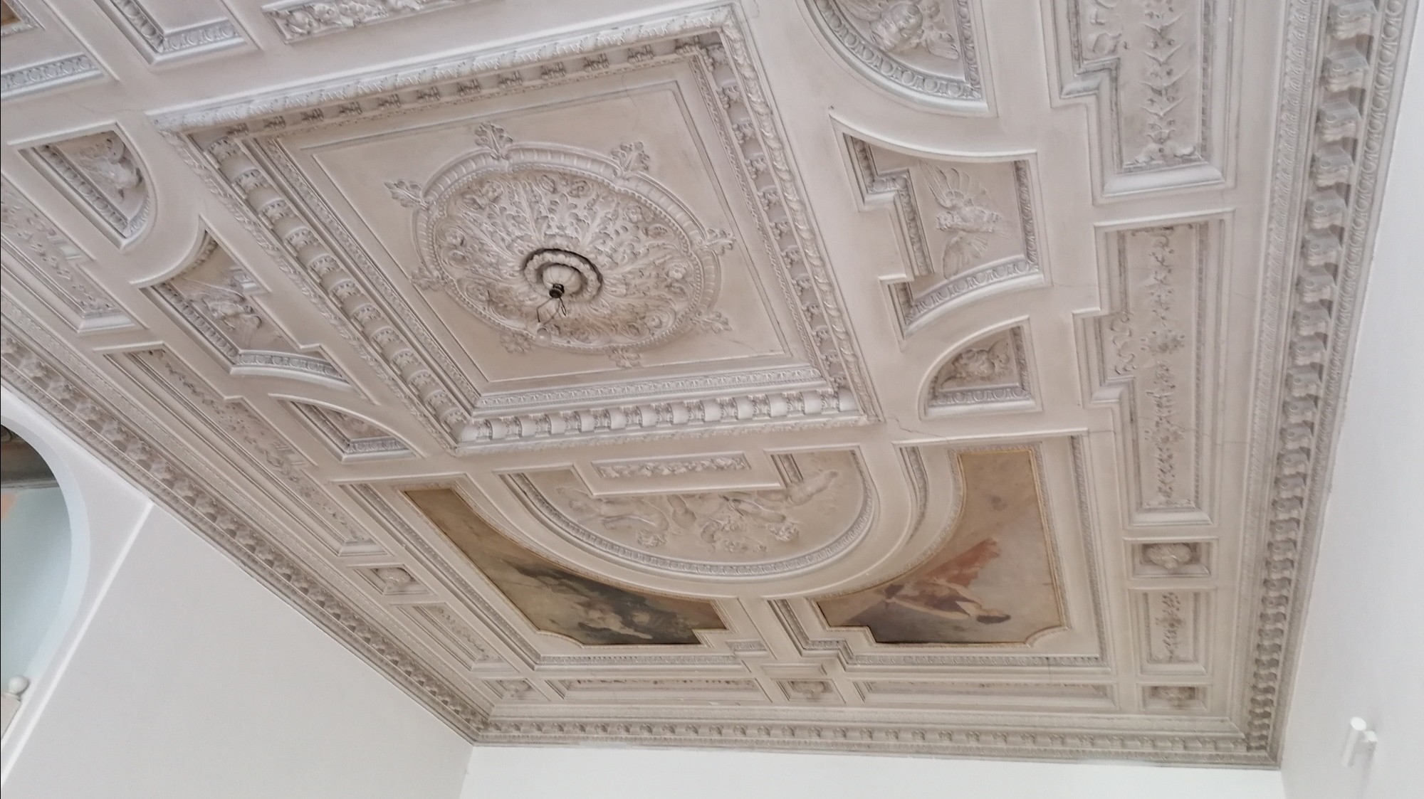 Strop je bohato zdobený.