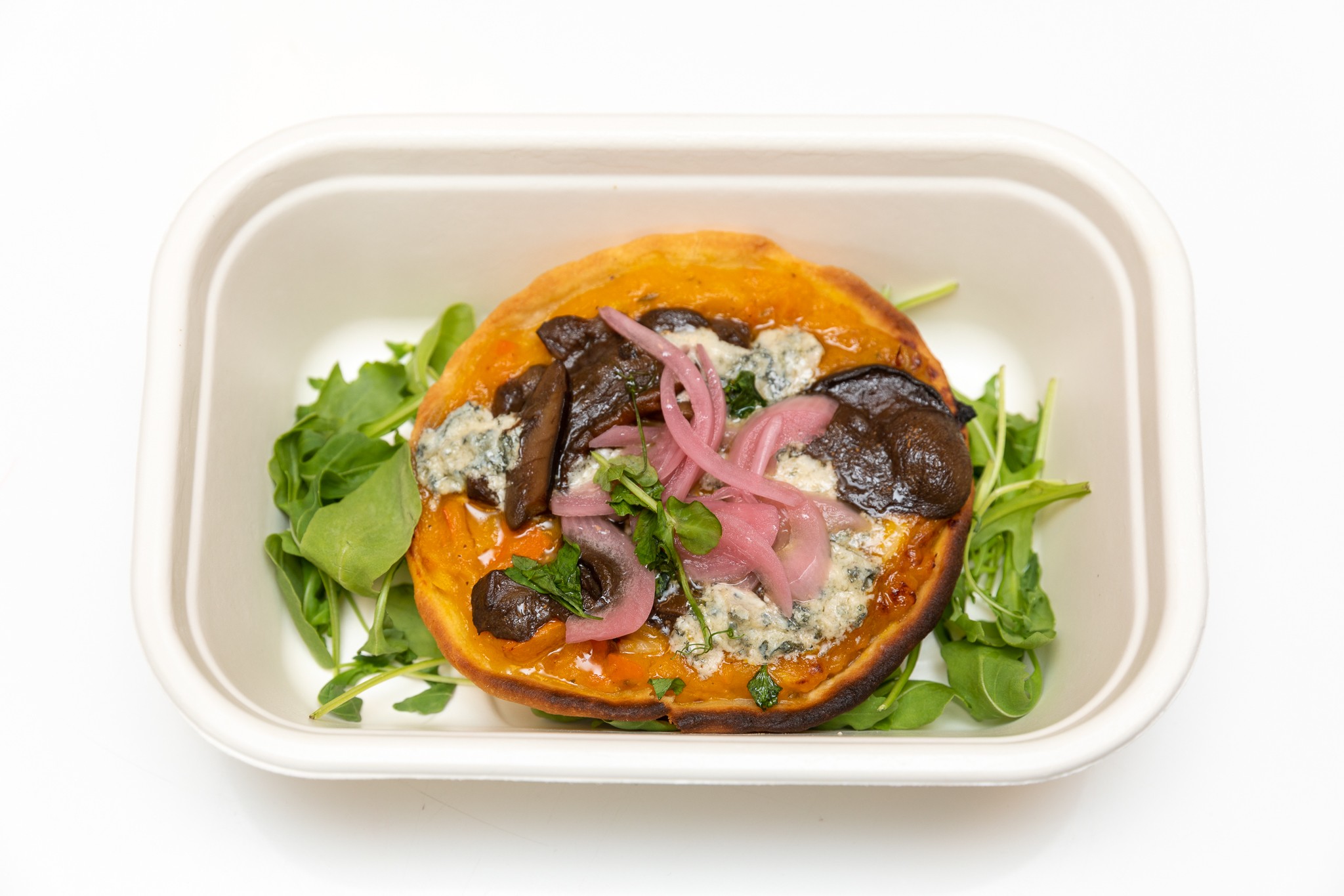 Aj predjedlo, Pečená tekvicová tartaletka so syrom valdeon (6,99 €), potešilo. Maslový koláčik pripravený z tekvice hokkaido, modrého syra valdeon, dubákov a talianskej slaniny pancetty bol jemný a spojenie chutí skvelé.