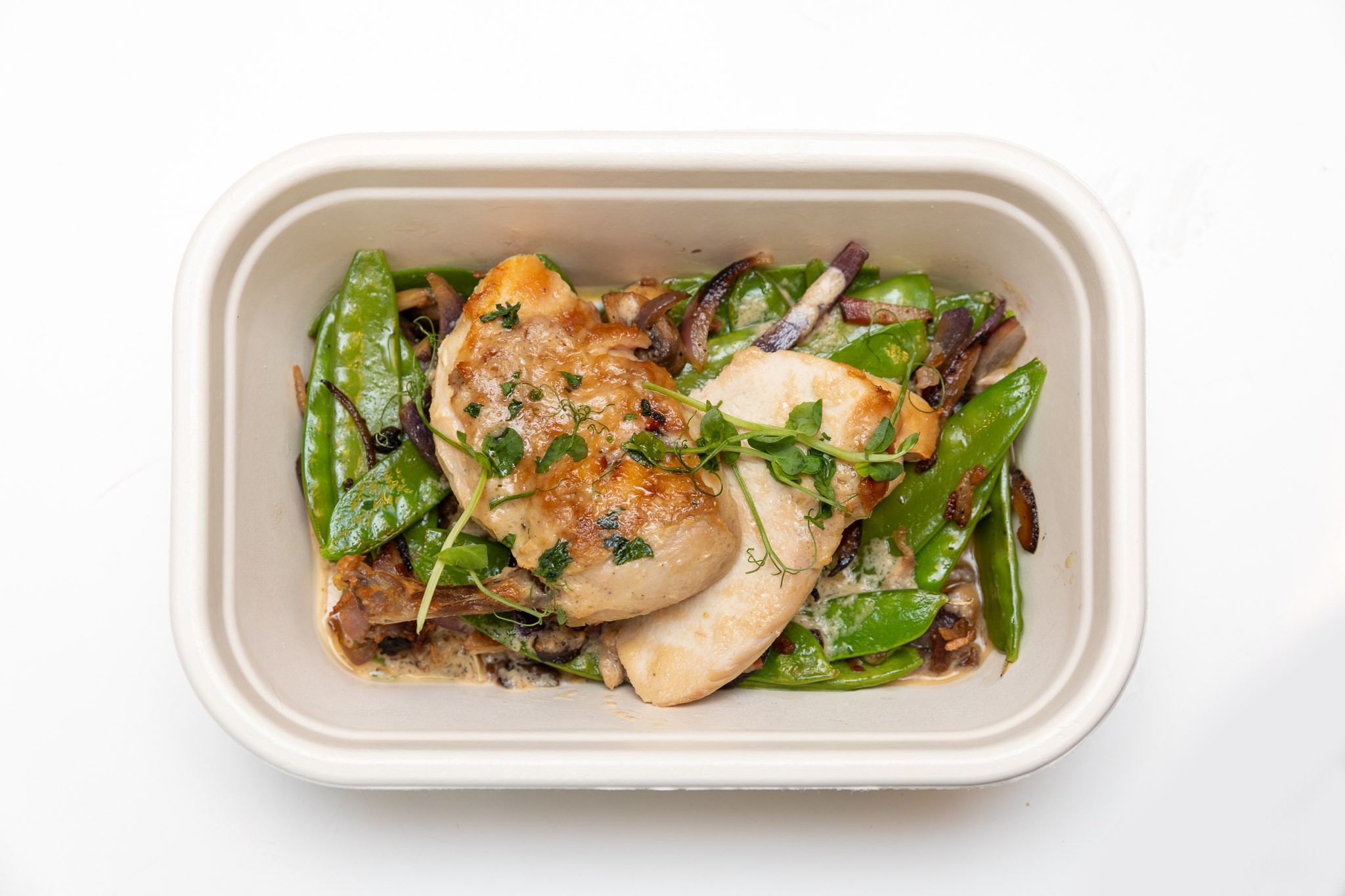 V poslednom boxe sme mali Primi burger (13,99 €). Spodná žemľa sa v ňom trochu rozmočila, chuťovo bol však dobrý a vďaka šťavnatému kuraciemu stehnu vnútri aj celkom netradičný. Zato zemiakové hranolčeky zvládli prevoz prekvapujúco dobre, keď sme sa do nich pustili, boli stále chrumkavé. Vďaka za takmer expresné vybavenie našej objednávky!