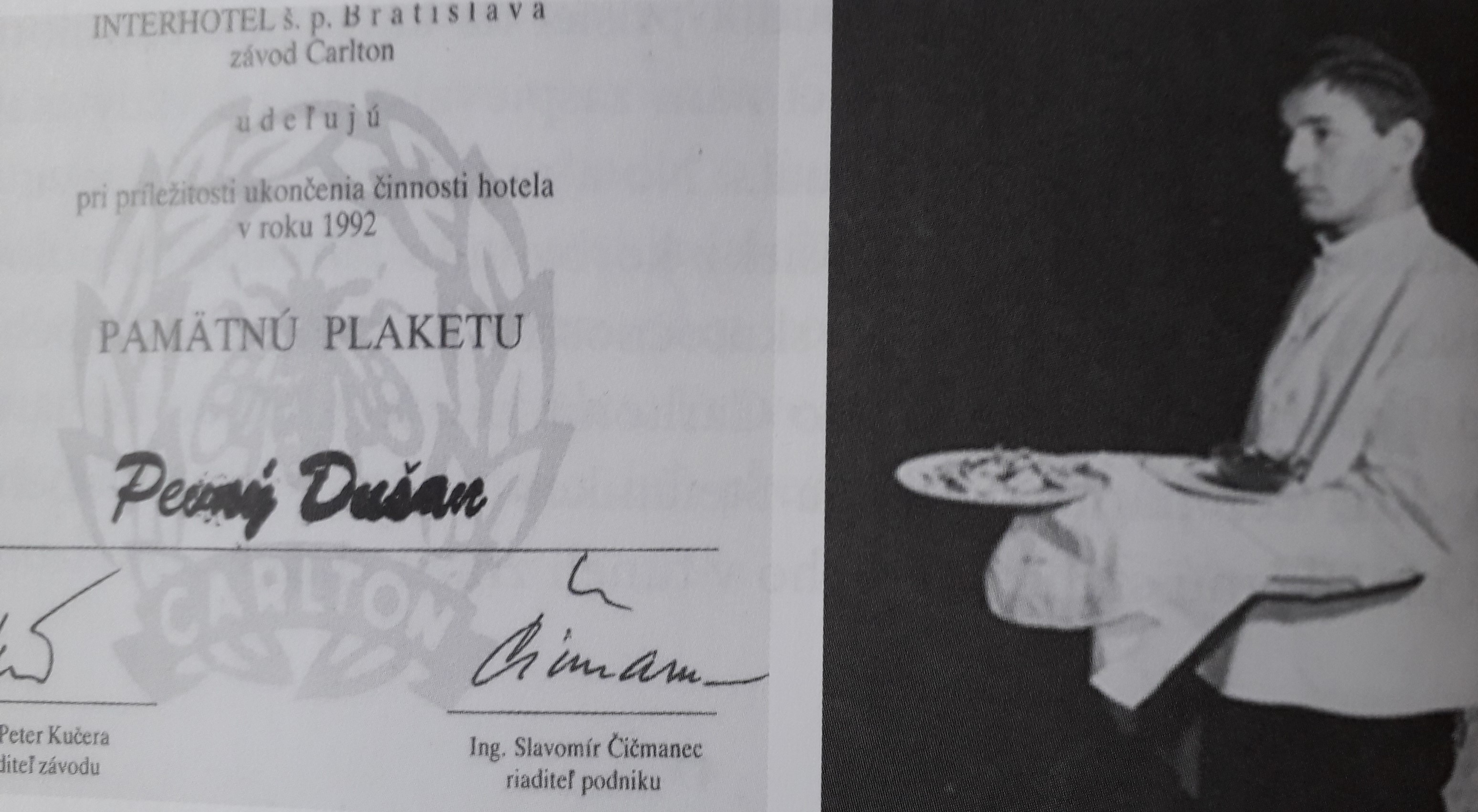 Keď si hosť v Kryme objednal namiesto kávy „našu kávu“, pán Šipický mu v šálke priniesol vodku alebo becherovku. Vrchný čašník z Carltonu Ján Šimko obsluhoval aj veľké celebrity v zahraničí, živou legendou sa stal tiež Dušan Pevný, ktorý odchádzal do dôchodku v roku 2003 z hotela Devín. Boli to páni čašníci, na ktorých si mnohí Bratislavčania pamätajú dodnes.