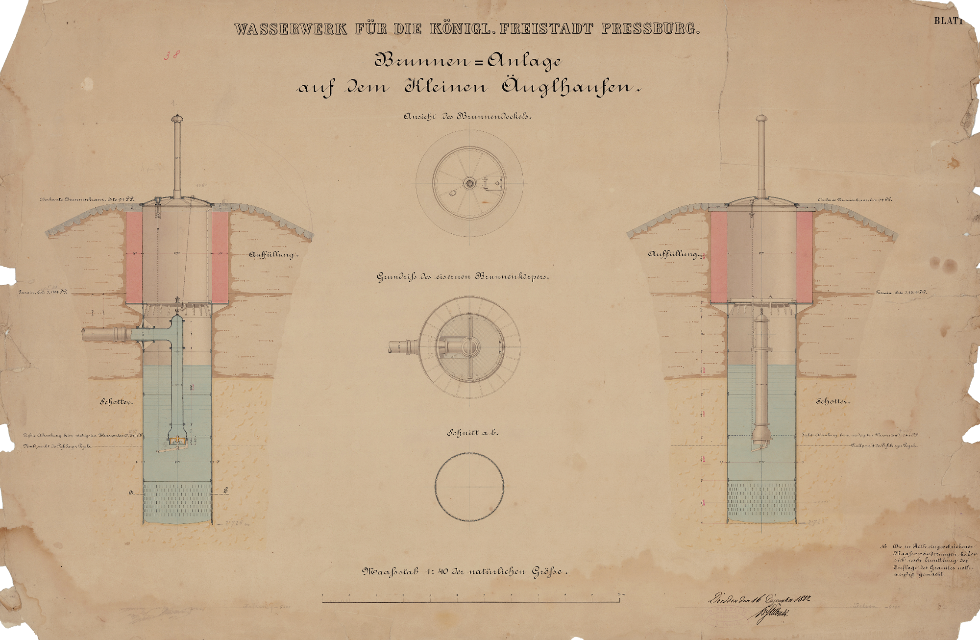 Studňa na ostrove Sihoť (projektová dokumentácia z roku 1882)