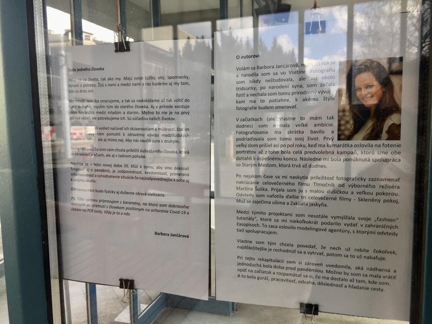 „Kolekcia fotografií ukazuje anonymnú skupinu obyvateľstva ako celkom konkrétnych ľudí, s minulosťou a plánmi do budúcna,“ hovorí autorka fotografií a dodáva: „Vážme si ich, inšpirujme sa nimi a pomôžme im zvládnuť tieto ťažké pandemické mesiace aj našou vlastnou disciplinovanosťou a zodpovednosťou.“