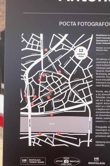 Veľkorozmerné fotografie sú inštalované priamo na autentických miestach, kde vznikali, divák sa tak môže zamyslieť nad plynutím času a premenami Bratislavy.